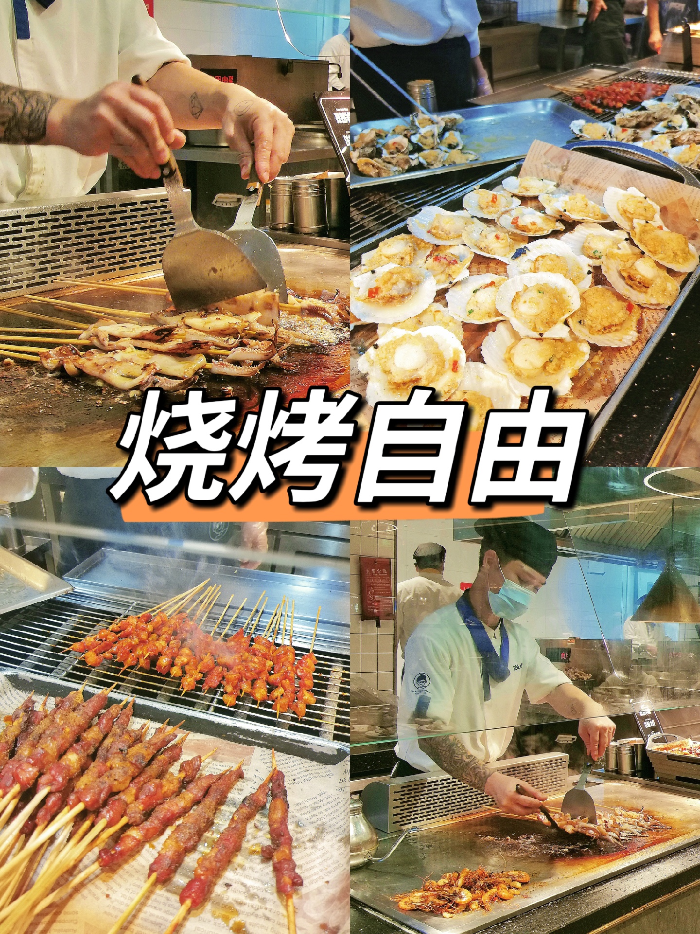 现烤的🐑羊肉串、🐟秋刀鱼、🦆北京烤鸭