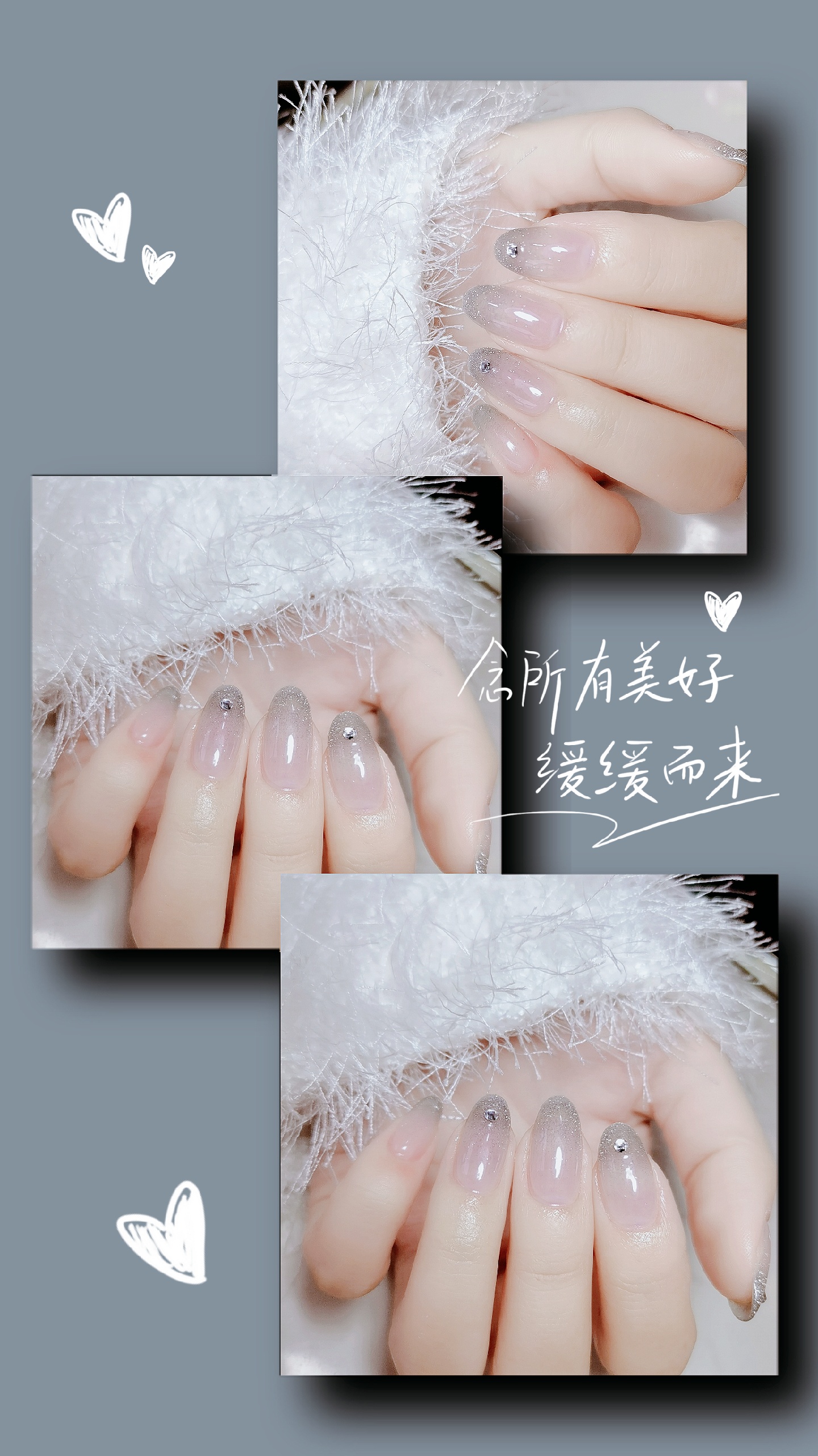 秋冬显白美甲|碎钻渐变美甲