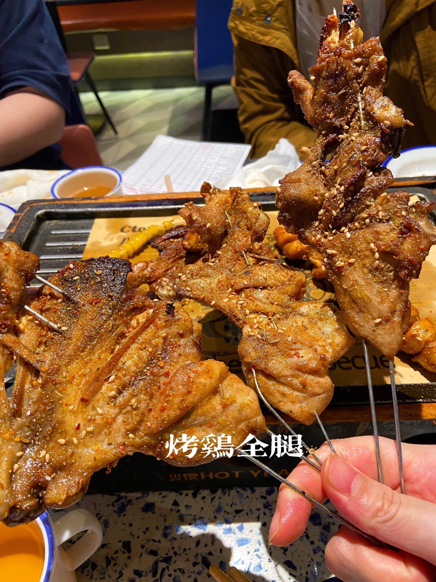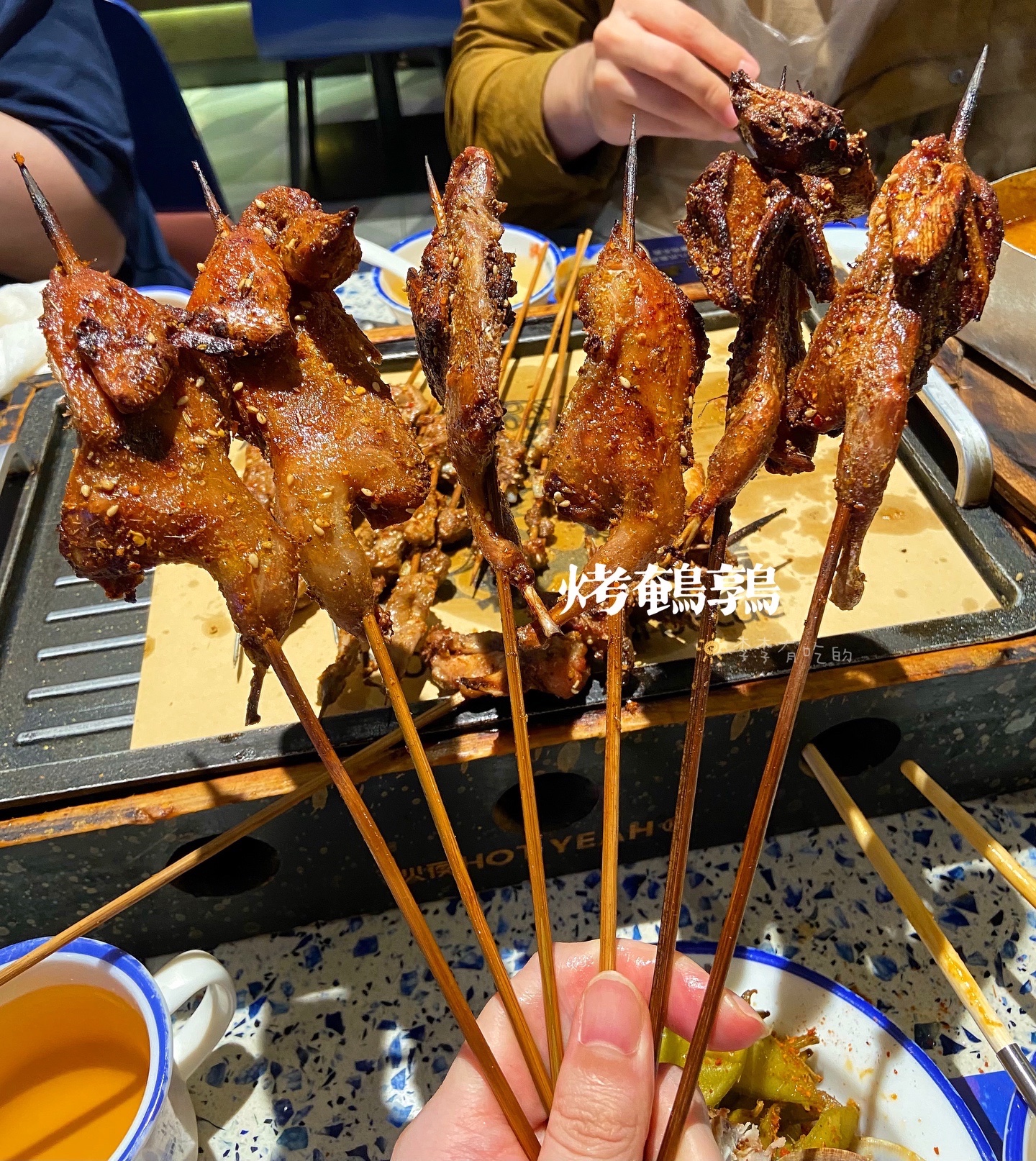「烤鹌鹑」鹌鹑是一个分成两串,皮脆但是肉比较干,相对鸡肉没有太多汁水,味道还不错,第一次吃烤鹌鹑。