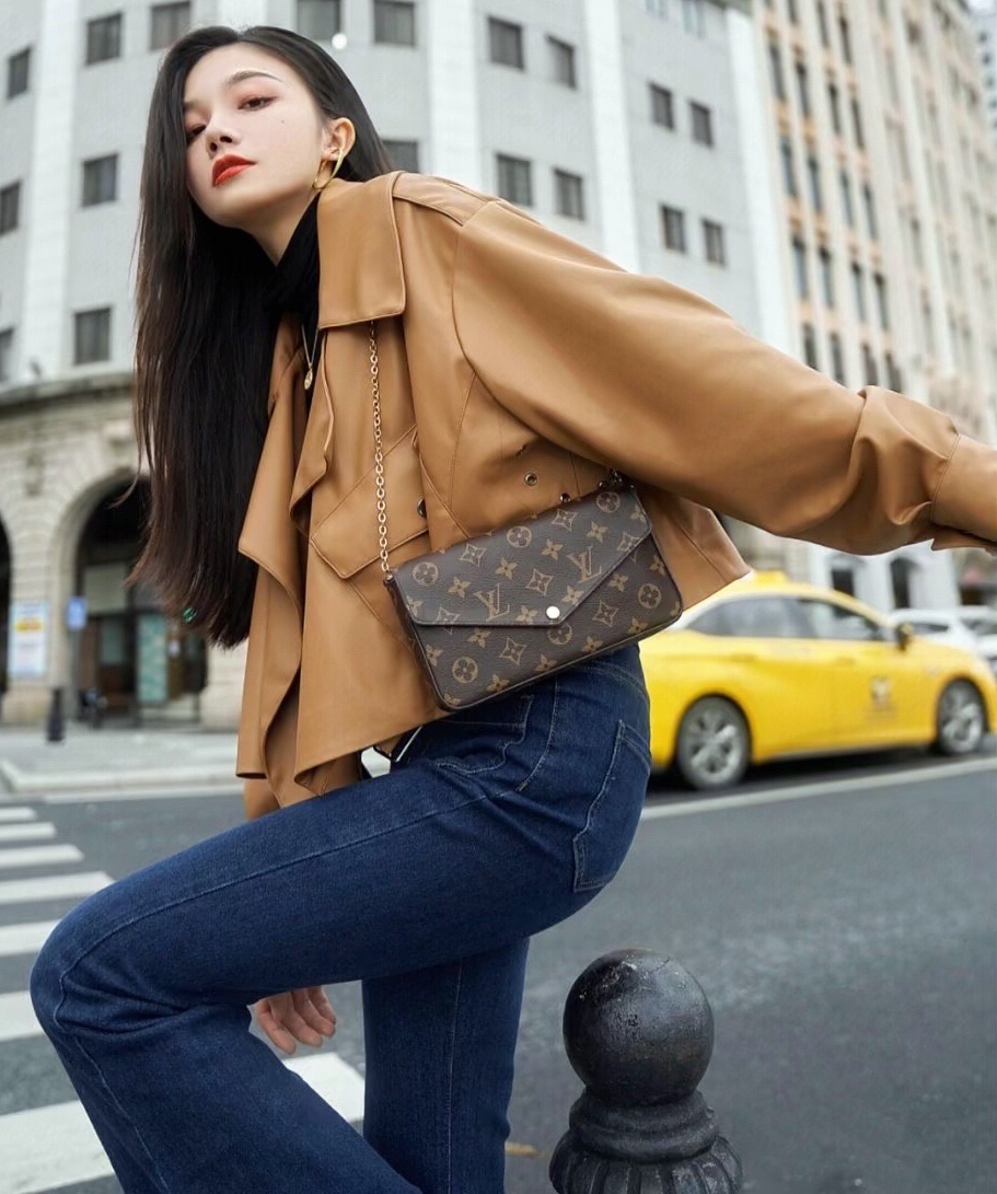 港风复古穿搭,皮衣阔腿裤太飒了吧