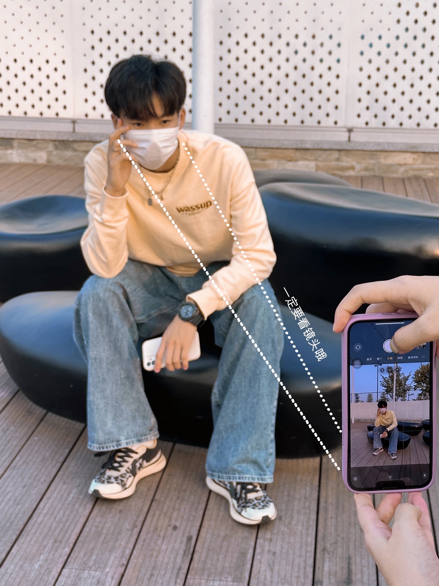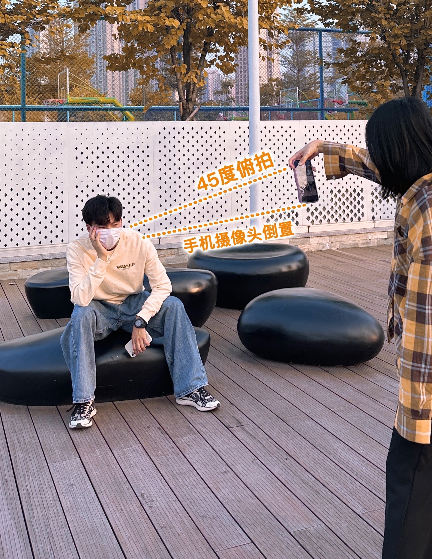1⃣️ 如果是坐下来的话,想要显腿长,可以俯拍就OK啦~