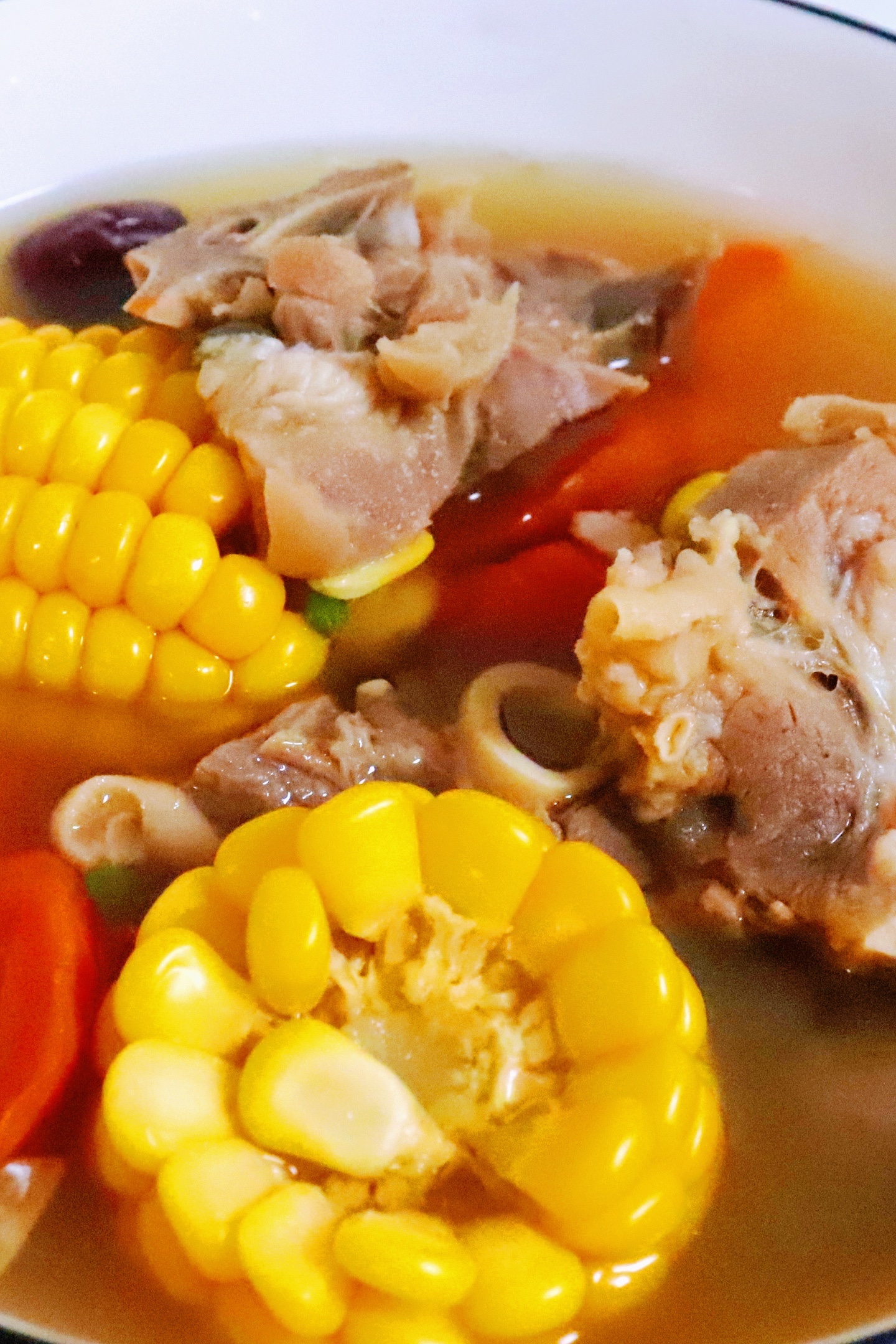 材料:当归、党参、黄芪若干、生姜75g 羊肉1000g、玉米🌽2根、红萝卜4根、调料适量