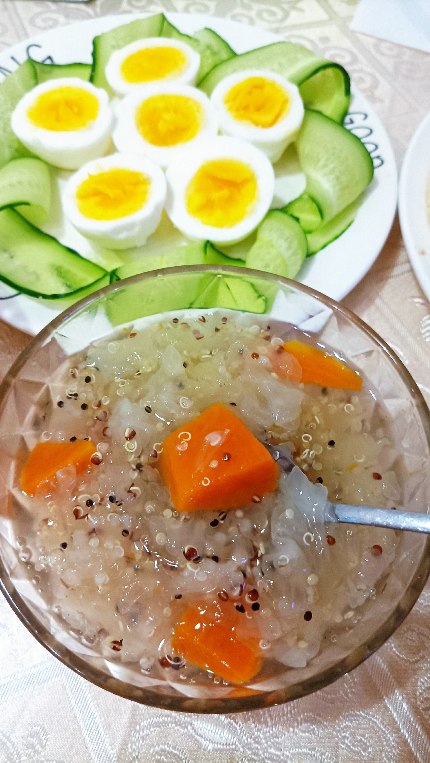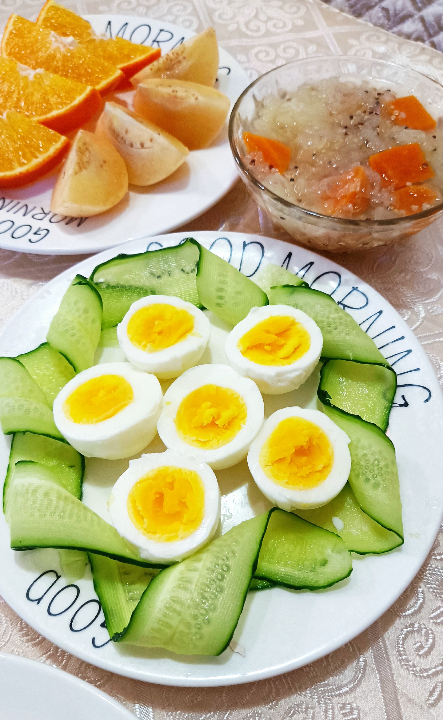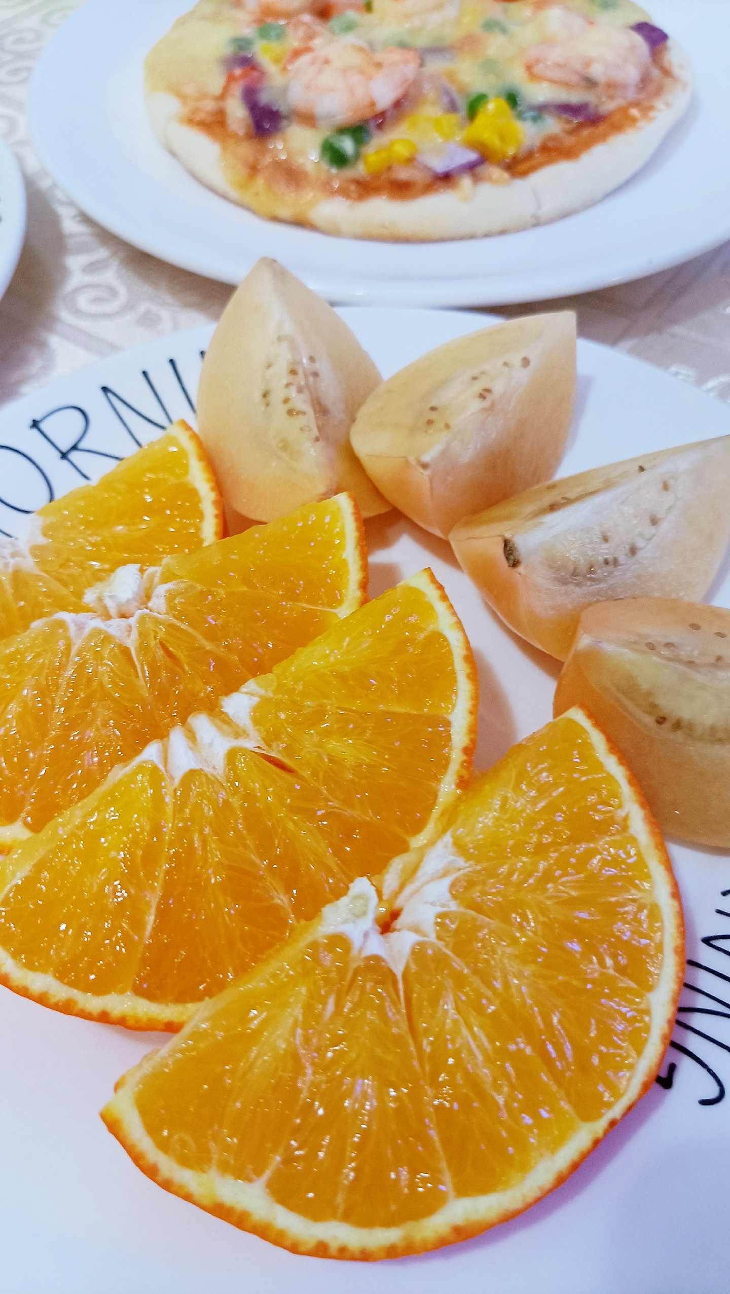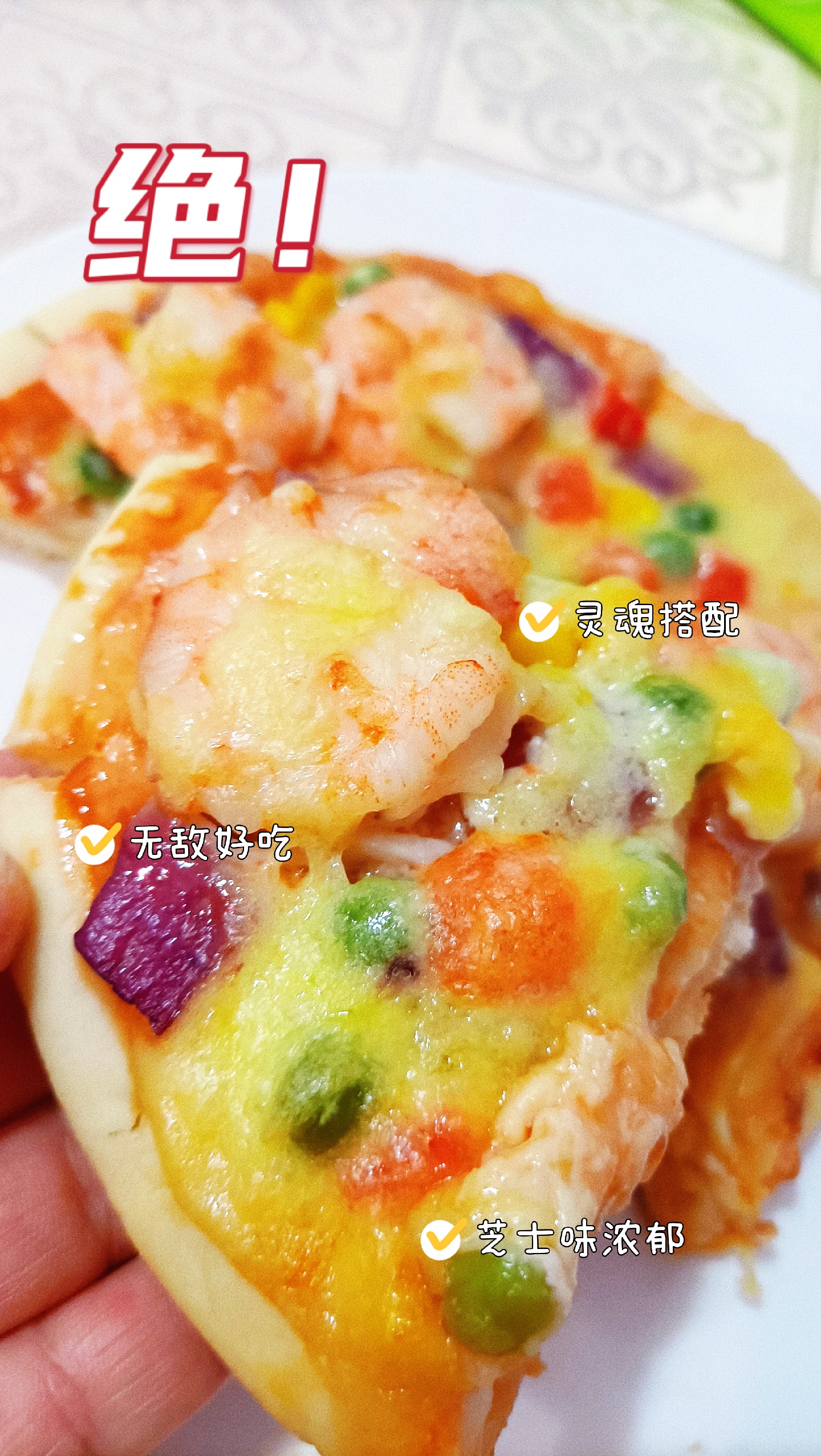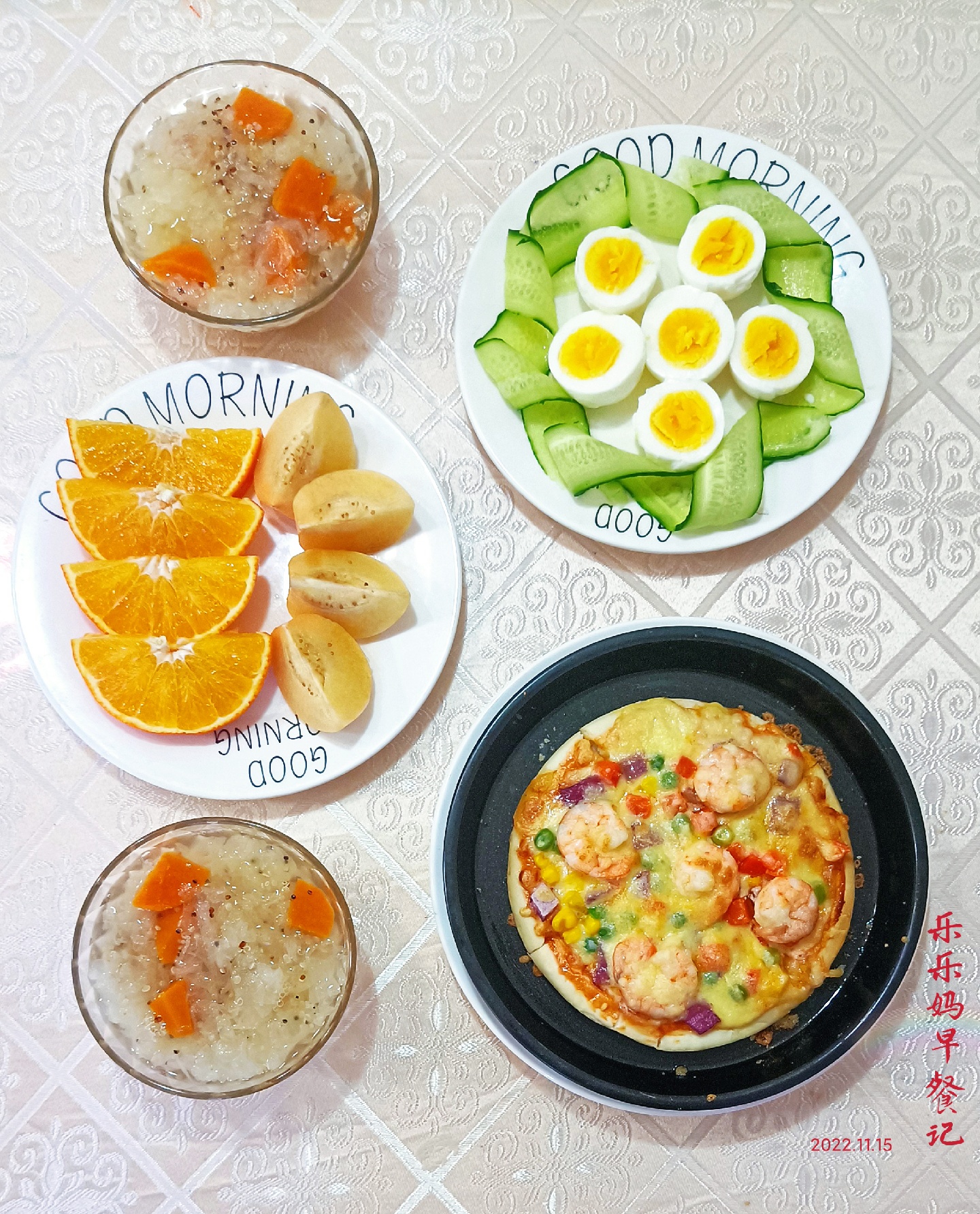 妈妈食堂今日早餐:彩蔬大虾披萨,藜麦红薯鲜耳羹,水煮蛋,爱媛🍊人参果。昨天披萨饼和芝士碎到货,今早给大乐乐安排上[嘿哈]太满足了,说以后就在家吃披萨,还说接下来她要双拼的,水果的,培根的[捂脸]只要健康营养的麻麻通通安排[偷笑]