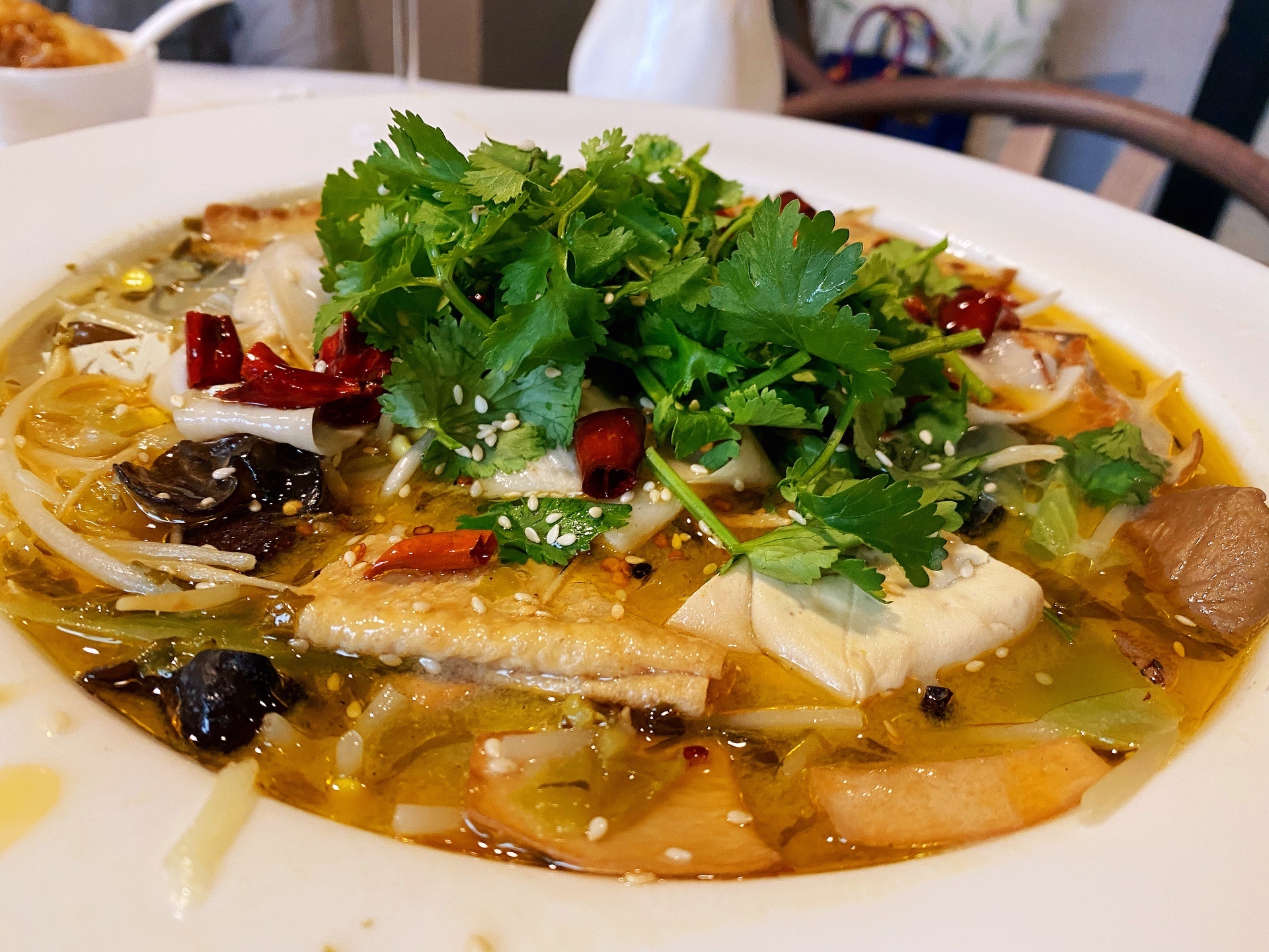 天一閣絕對是素食界天花板,驚喜無限的酸菜魚,味道比真正酸菜魚好吃,哈哈!還有味道非常相似的片皮鴨,有金邊的韭菜餃,還有自家製的醃製蘿蔔,下次一定要再來打卡