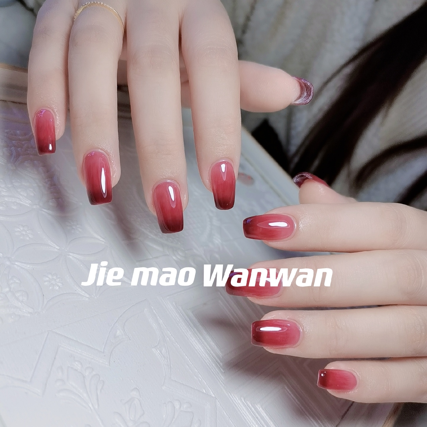 渐变美甲|秋冬显白美甲|红棕色美甲-美图社区-美图秀秀
