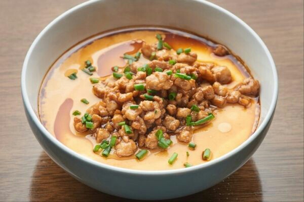 2、上面盖上保鲜膜,插几个小孔,水开后上锅蒸,蒸15分钟左右就行了。趁着蒸蛋的时候,我们起锅烧油,爆香葱花,再把肉末倒进去炒到变色,之后用生抽、蚝油调味,最后加上水淀粉,煮到浓稠关火。等鸡蛋蒸好后,把炒好的肉末淋上去,就可以啦。
