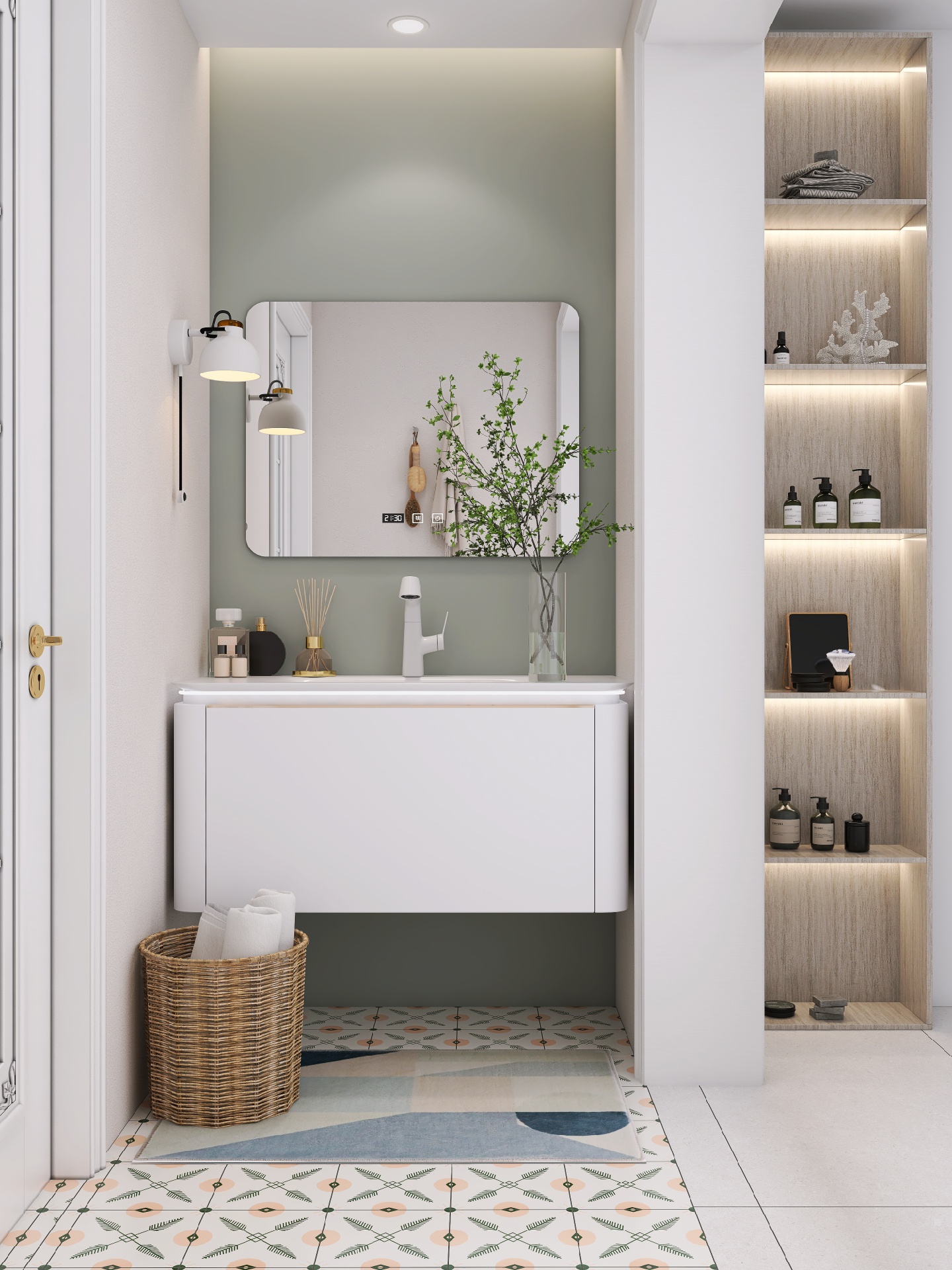 ☀ 悬挂式的浴室柜,排水走墙排,底下可放置物品,亦能保持干燥卫生🍃