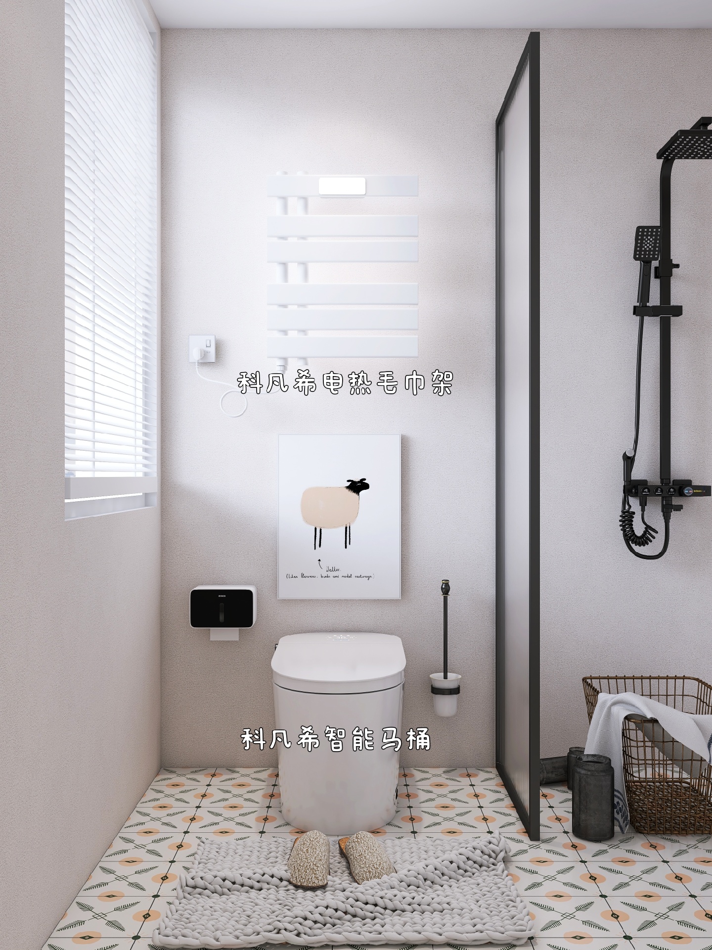 ☀ 上方的毛巾架也是十分不错的卫浴好物~电热型毛巾架能为毛巾烘干、加热、杀👾,当然也能挂其他衣物制品👚 性价比很高~