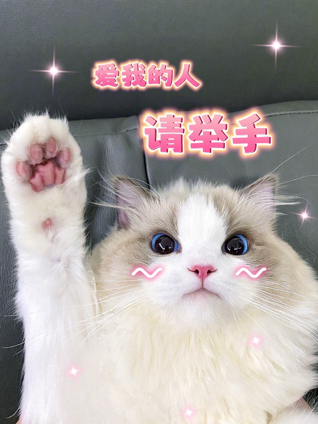爱我的人请举手|猫咪趣味模板图源网,侵删-美图社区-美图秀秀