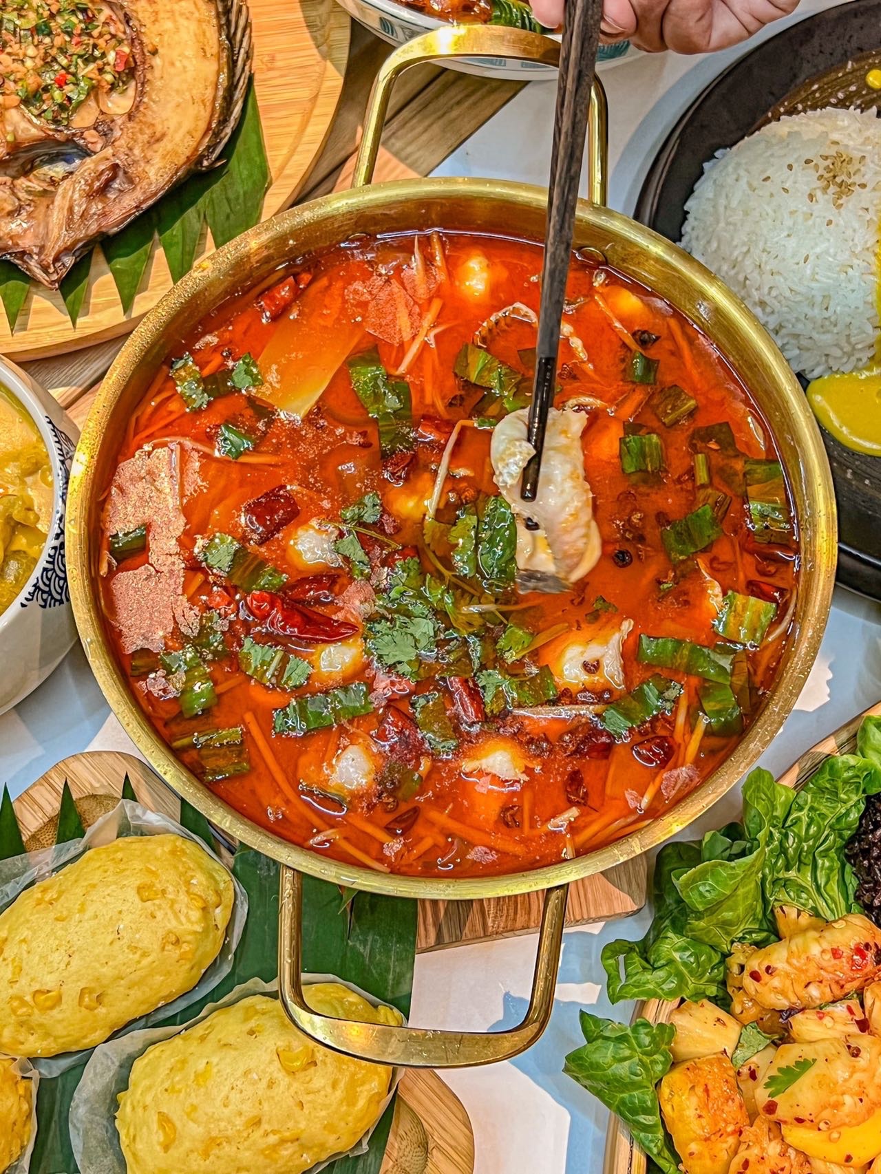 ✔️招牌版纳酸笋黑鱼片:酸笋和黑鱼煮出来的汤酸甜十足,鱼肉鲜嫩少刺,汤汁浓郁,酸爽解腻又好入口!用汤泡饭也是妥妥的神仙吃法!