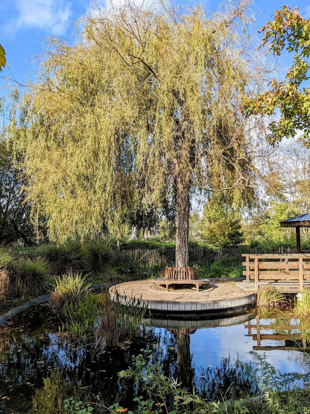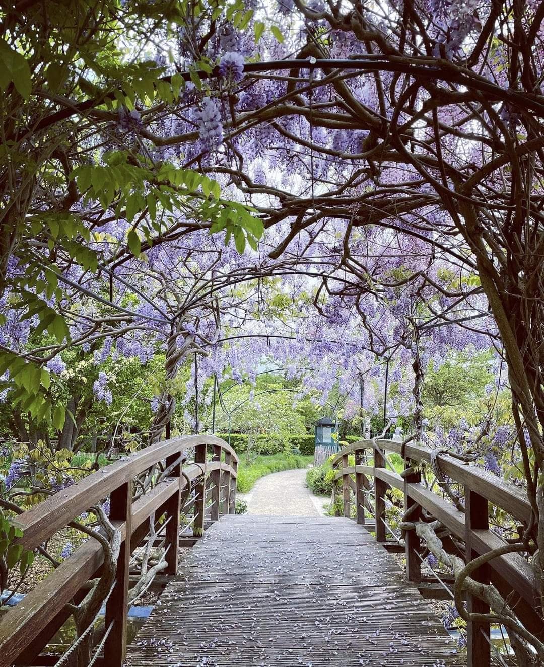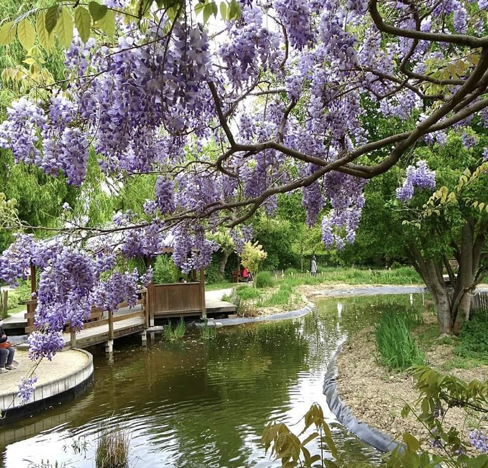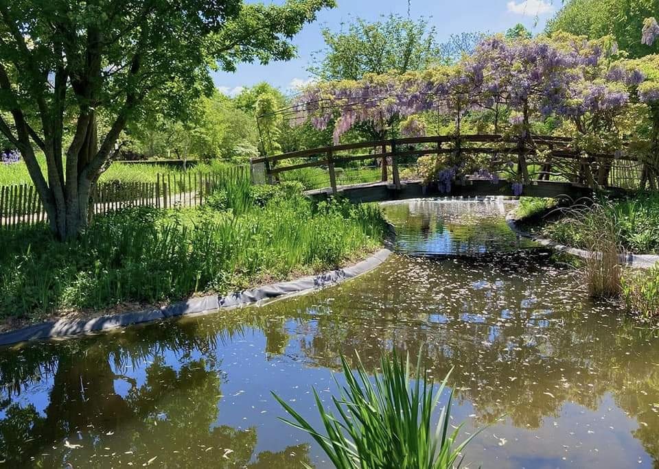 水上花园的小径及其木制走道让人想起雷诺瓦在1869年完成第一幅印象派风格作品《青蛙潭》,或莫内的版本《Les bains de la Grenouillère》。