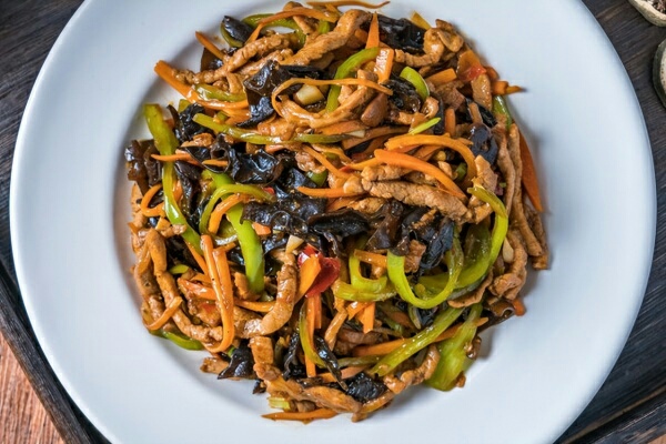 用料:里脊肉、黑木耳、胡萝卜、青椒、葱蒜、盐、白糖、料酒、酱油、陈醋、玉米淀粉、豆瓣酱