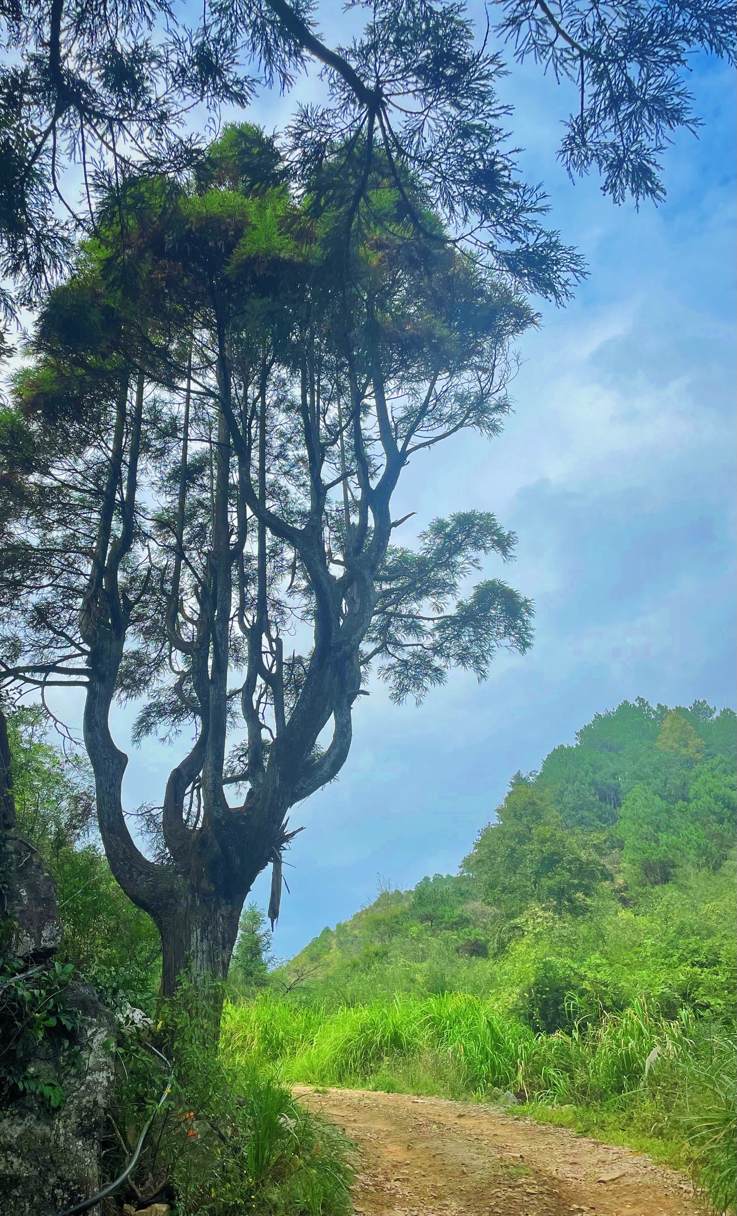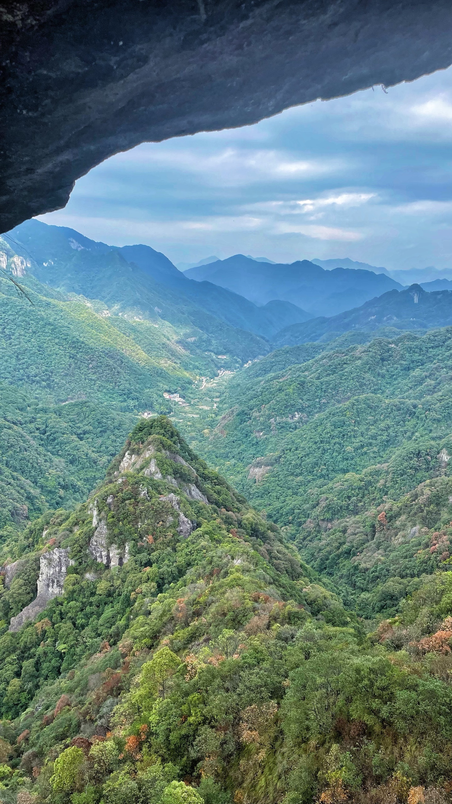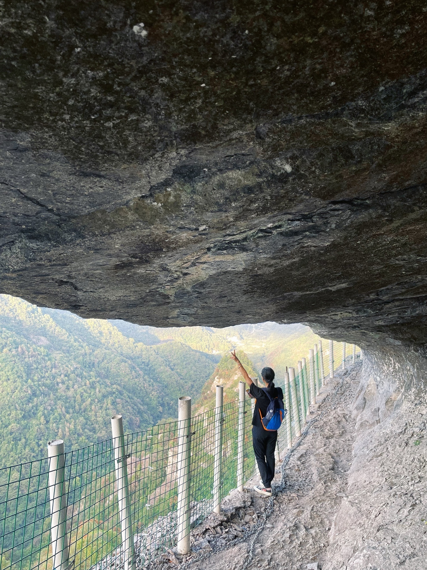 整个山顶由一块形似汉堡的巨大岩石组成,岩石中间的“汉堡洞”环绕乌岩山峰外侧一周,将整个汉堡岩分成上下两片,说是“汉堡洞”,其实是数个大小不一的天然洞窟组成,其中最大的长度有10多米,高度近2米,宽度约3米,洞内洞中有洞,洞洞相连,鬼斧神工;洞外悬崖峭壁,奇峰耸翠,村落隐约。