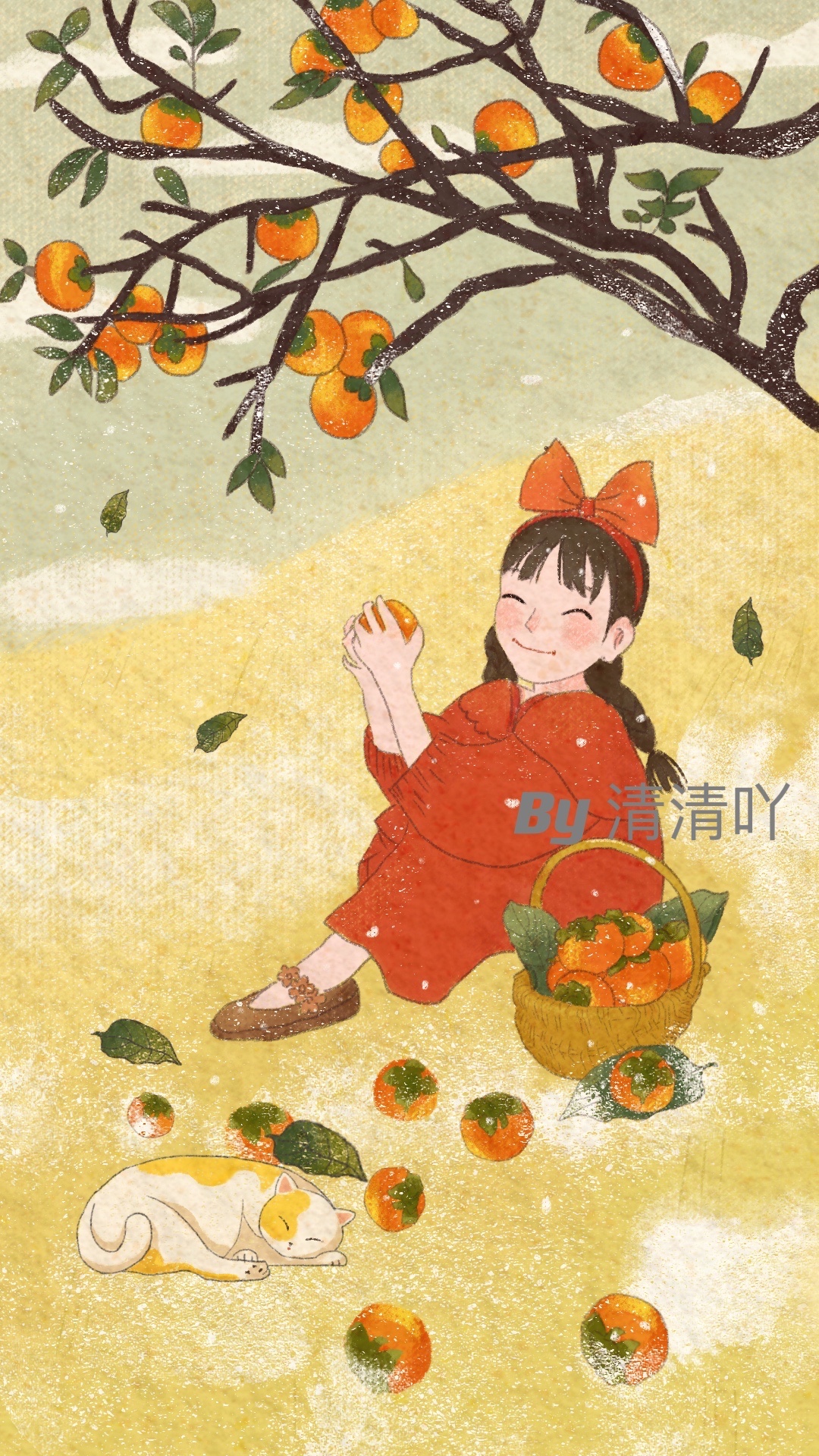 原创柿柿如意,一生一柿插画。适用于:红包、、手机壳,手机壁纸,电脑壁纸,十字绣。可授权#手机壳#红包#插画#十字绣#兔年#原创