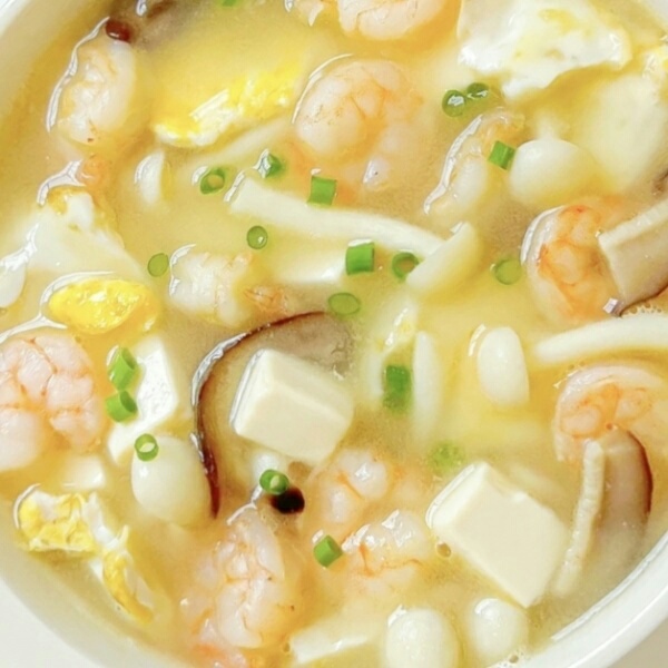 鸡蛋 虾仁 嫩豆腐,白玉菇,香菇