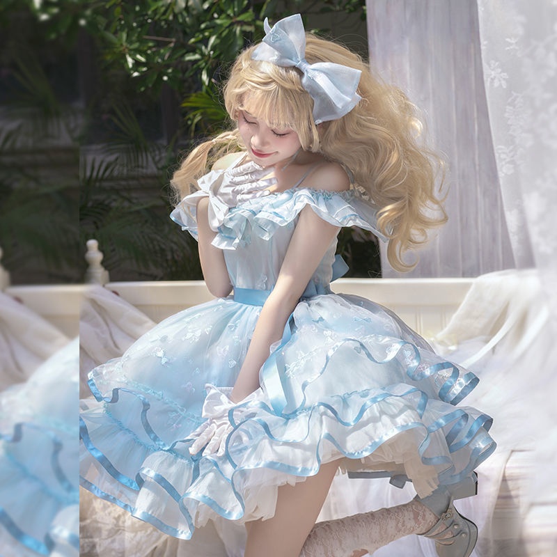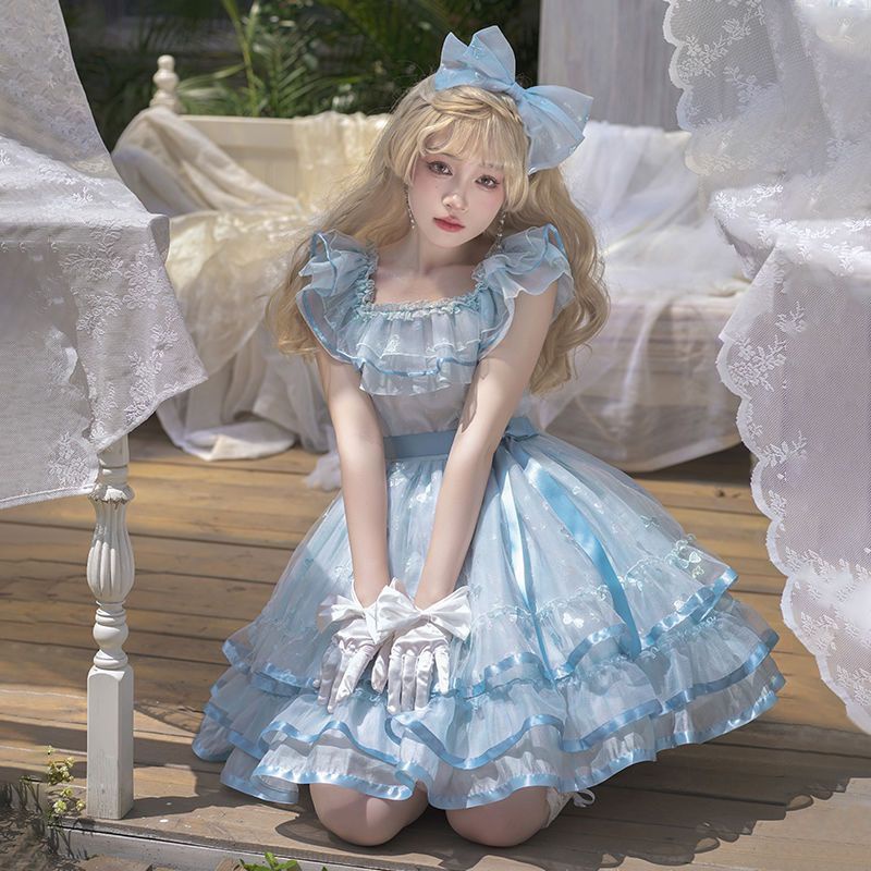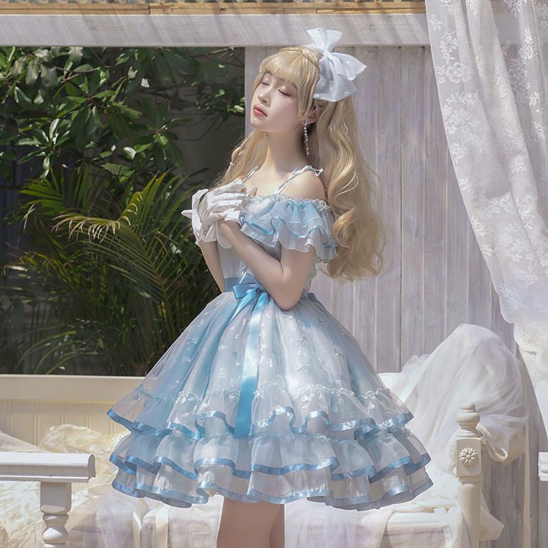 海的女儿 原创洛丽塔三层裙摆可爱软妹蓝色纱纱lolita公主裙