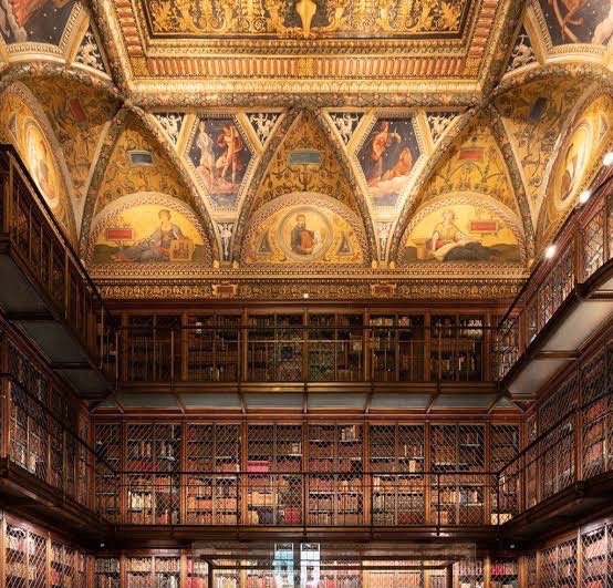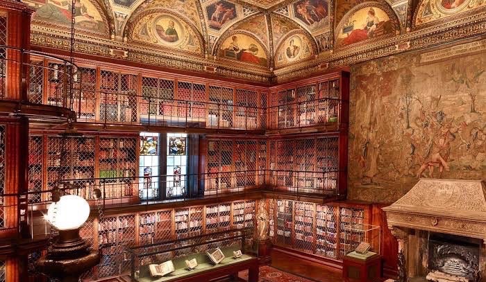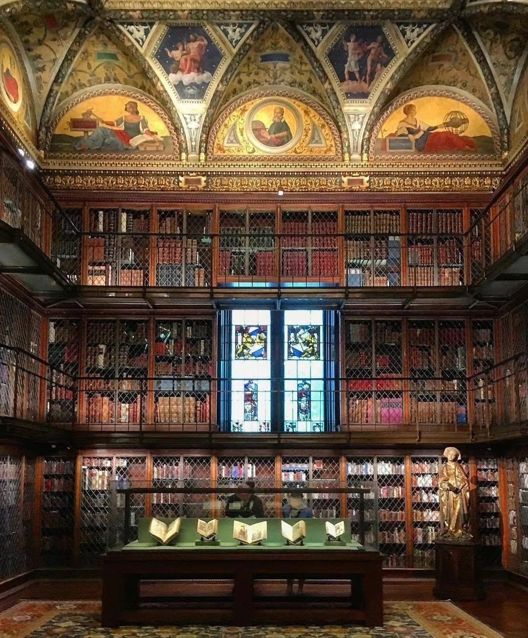 银行家摩根大通购买于1880年 图书馆成立于1906年 收藏有大量的中世纪手稿 欧洲艺术大家的版画和素描 堪称艺术文学的殿堂