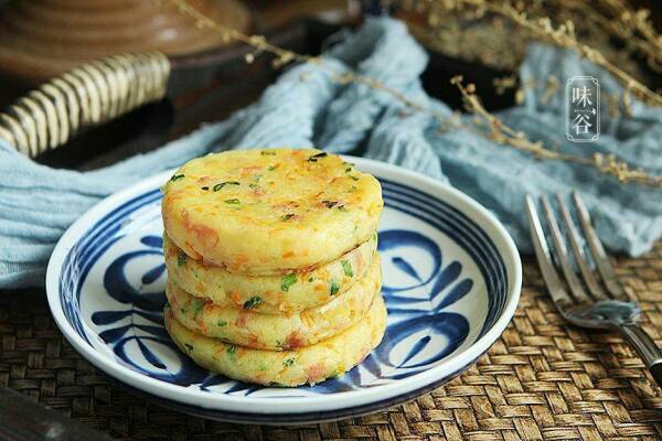 【做法】:1、土豆切片蒸熟后压成土豆泥,香肠切丁,胡萝卜去皮切碎,香葱切碎备用;