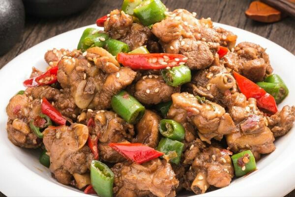 材料:土鸡、干辣椒、葱姜、尖椒、豆豉、盐、白糖、料酒、生抽、老抽、蚝油