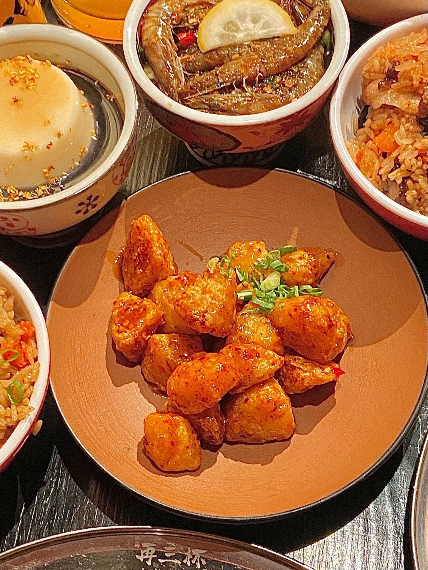 外皮焦焦的酥脆!是用糖醋汁包裹的!里面土豆糯糯的 我跟我朋友吃的停不下来😝