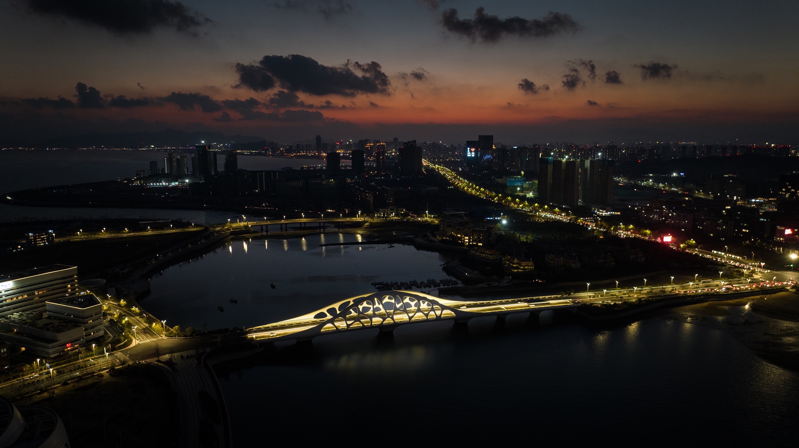 ✅桥身的镂空纹理,是对珊瑚外形进行了抽象的艺术化勾勒,整体造型简约流畅,形成一朵绽放的“珊瑚贝”,兼顾交通和景观两方面作用,早已成为西海岸的一道靓丽风景珊瑚贝桥,入夜后灯光璀璨、五彩斑斓,桥上光影变幻,与岸边灯火遥相呼应,深受市民和游客的追捧,也成为了荧幕上的常客。