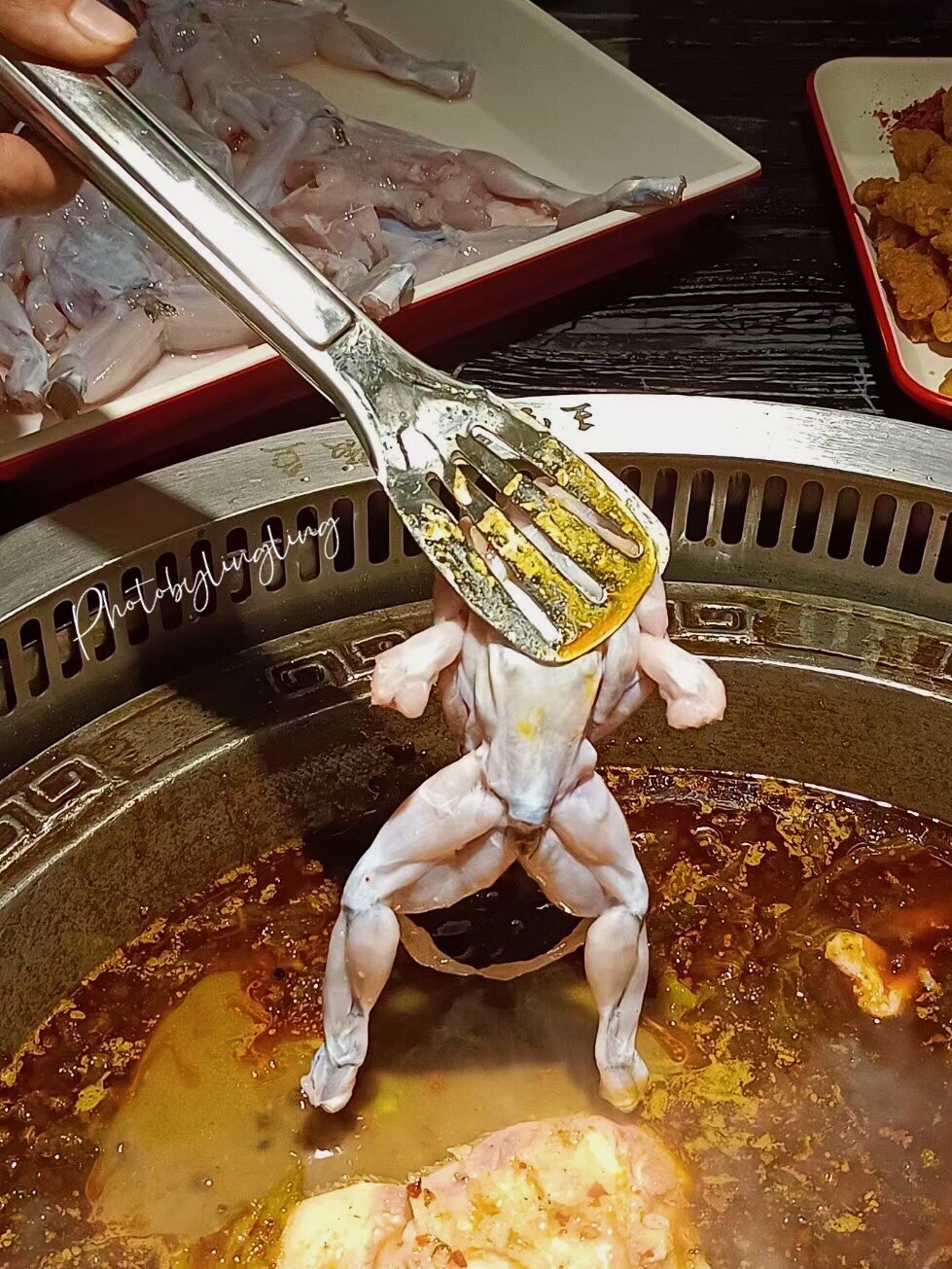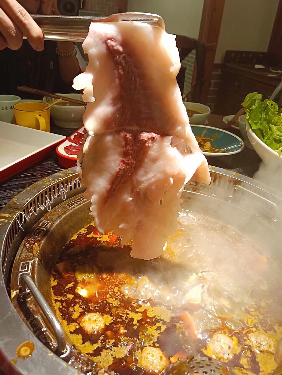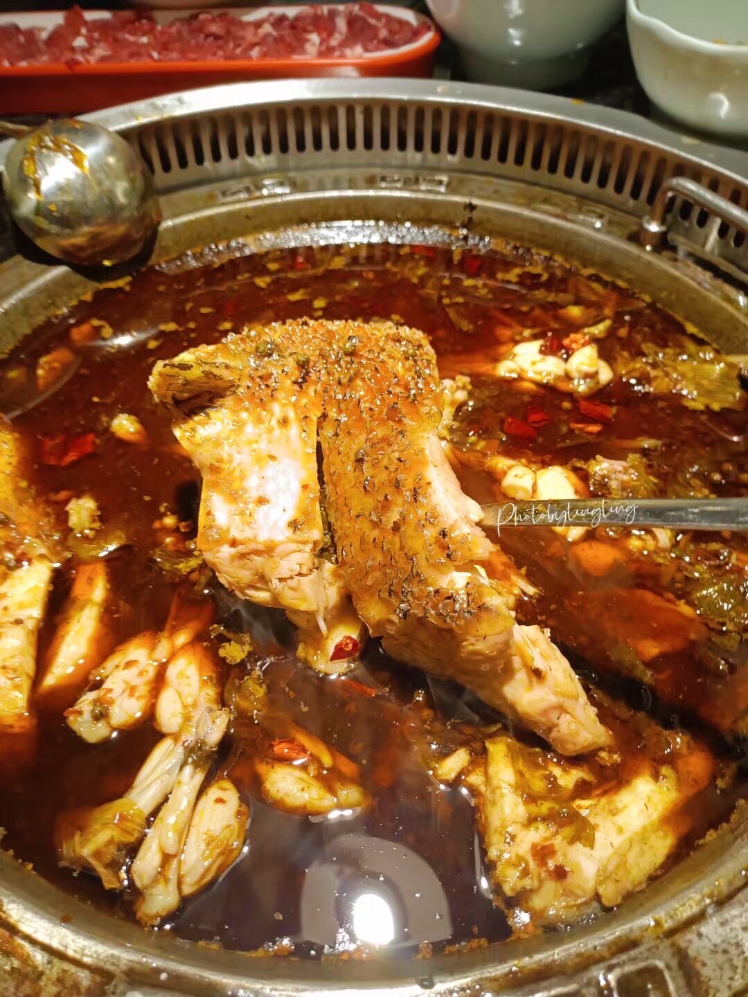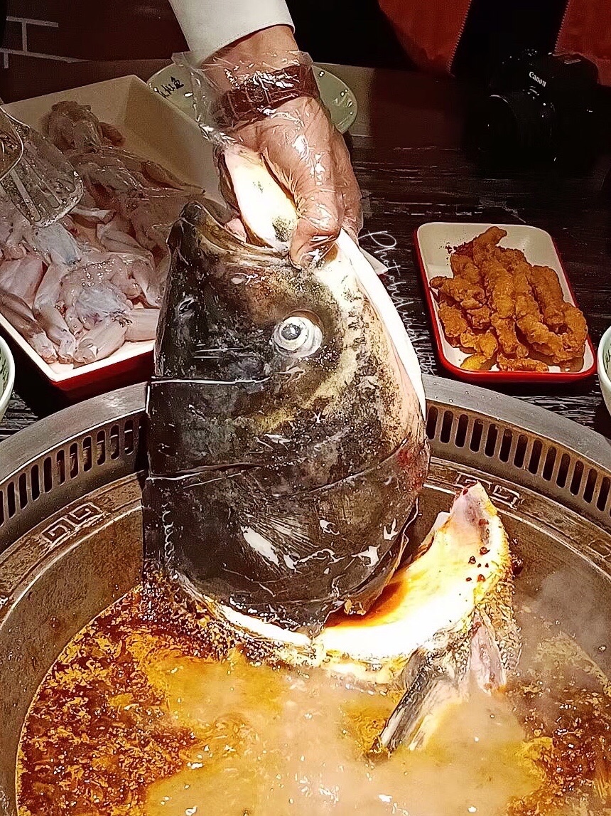 大雨滂沱的夜晚,朋友约着吃麻椒鱼看球赛,于是选了新开业优惠力度很大的王宝器麻椒鱼,服务员小哥现场炒制的锅底很够味,能够把人香迷糊了。千岛湖的鱼,半拉鱼头就有6、7斤。再来盘美蛙,来盘鱼肉,再点上几份现吃的四川腊肠,小酥肉豆腐、青菜什么的,一桌人十人,吃得大汗淋漓,麻辣香成都味真是过瘾啊……