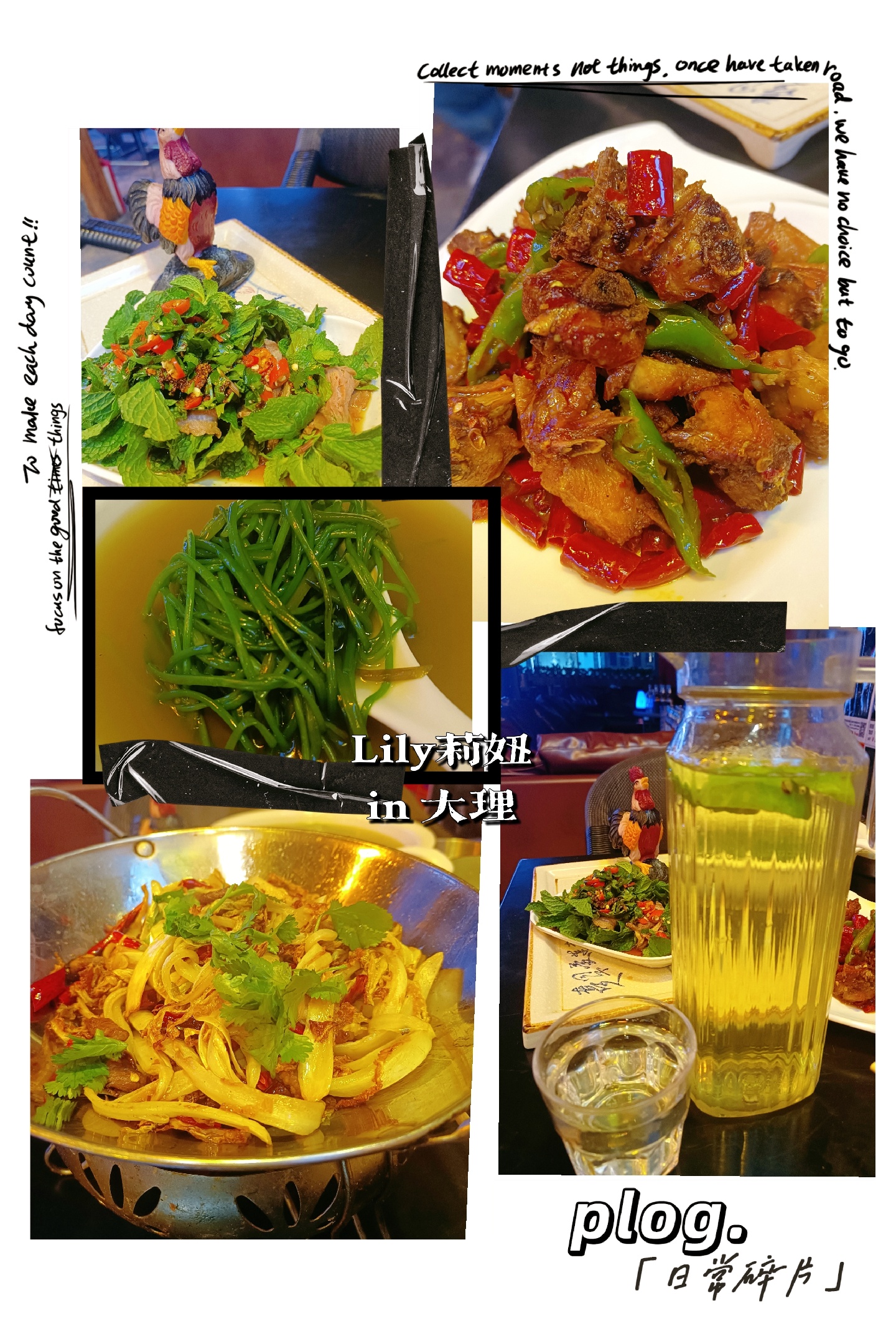 薄荷牛肉卷酸辣清新,干锅娃娃菜很香,娃娃菜炒很干,里面还有肉丁。水性杨花汤不用说,大理特色,必点,滑溜溜很清甜。