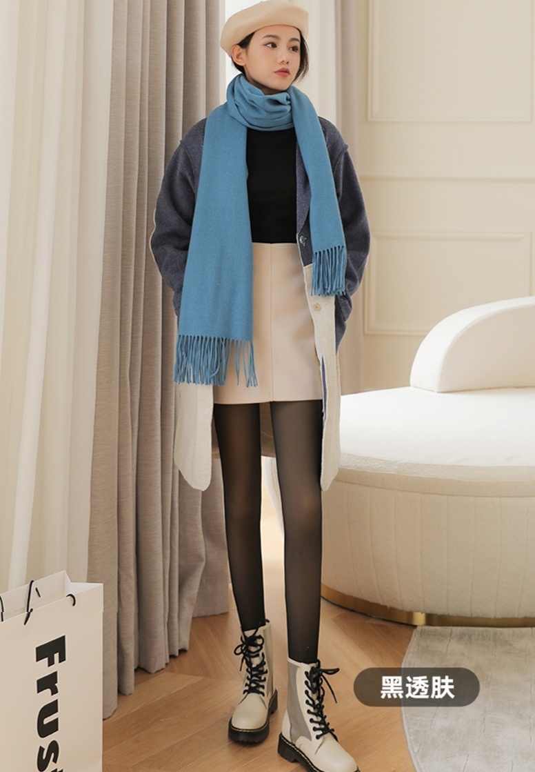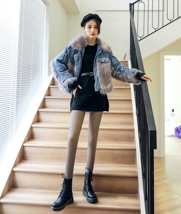 空姐灰加绒黑丝一体打底裤,透肤色不勾丝,搭配黑色短靴,显瘦显身材彰显淑女魅力。