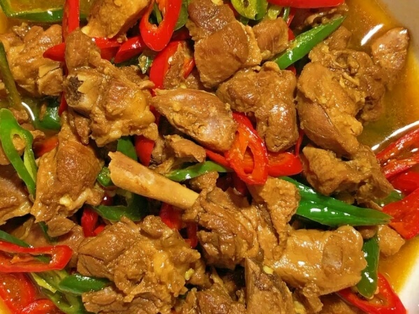 准备食材:鸭肉,小米辣,青线椒,蒜末,姜片,香叶,八角,桂皮。
