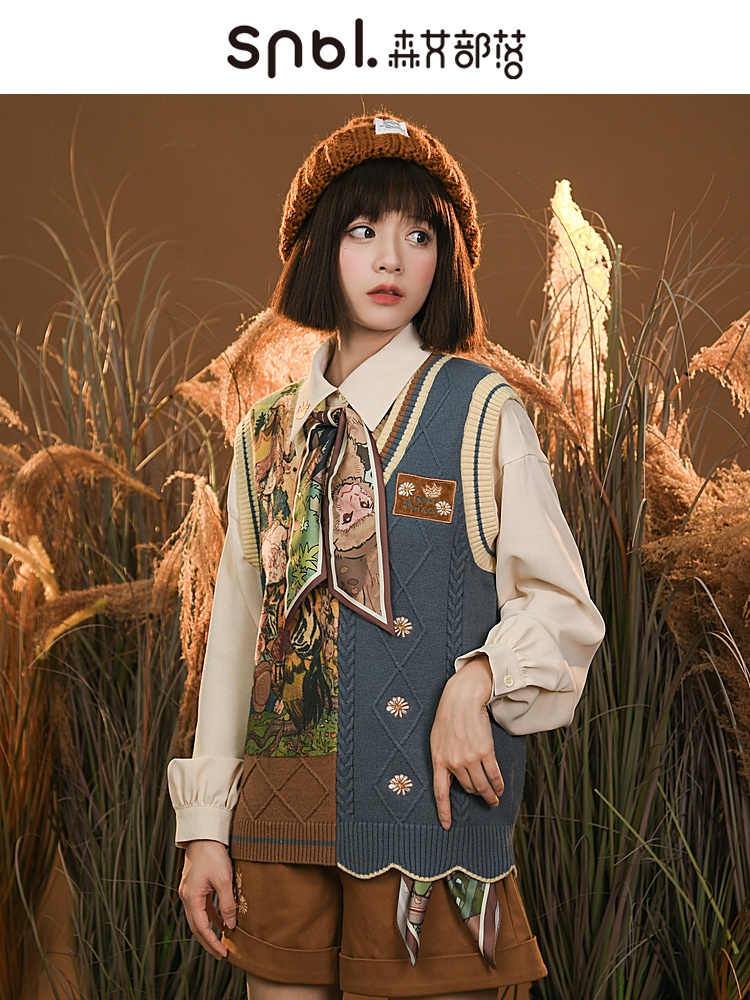 今日份复古风穿搭穿搭是森女部落家的古衬衫+文艺风马甲,是真的很好看,主要马甲上的印花图案是真的很好看哇,冲冲冲