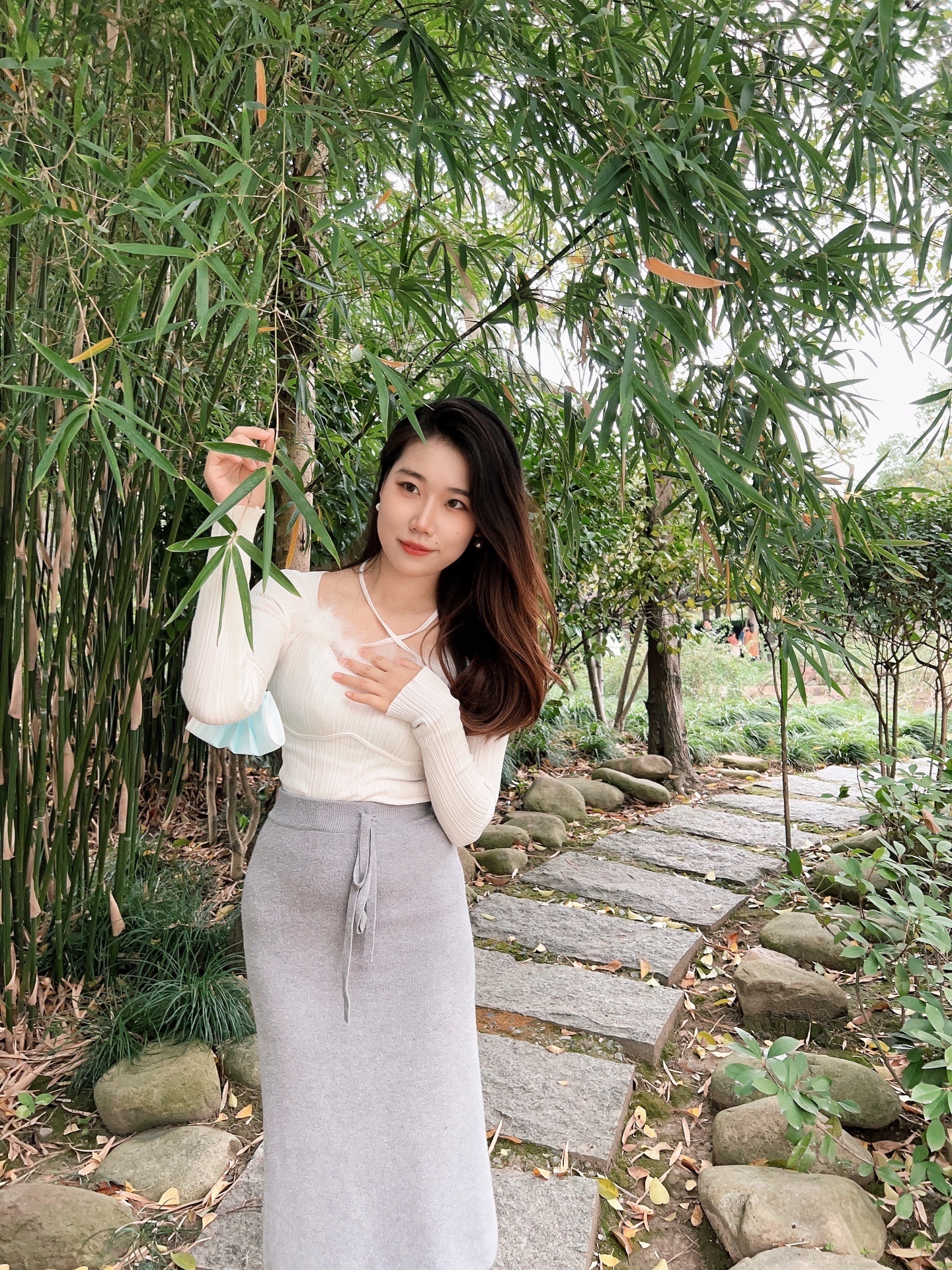 建议可以降低相机的位置,将人像放大至三倍,人物微微低头,相机📷内扣俯拍最佳,可以将金黄的落叶和人物完美和谐。