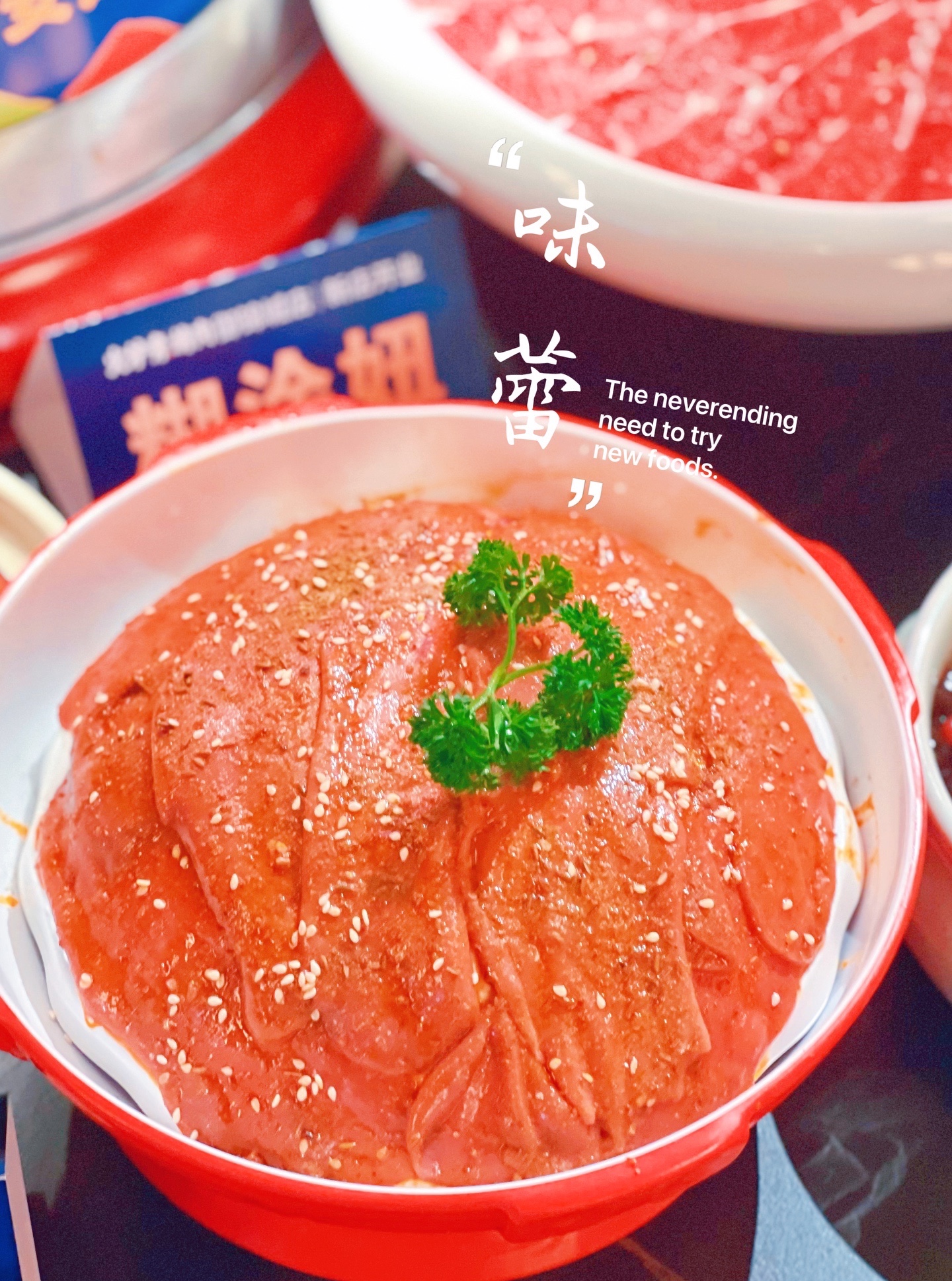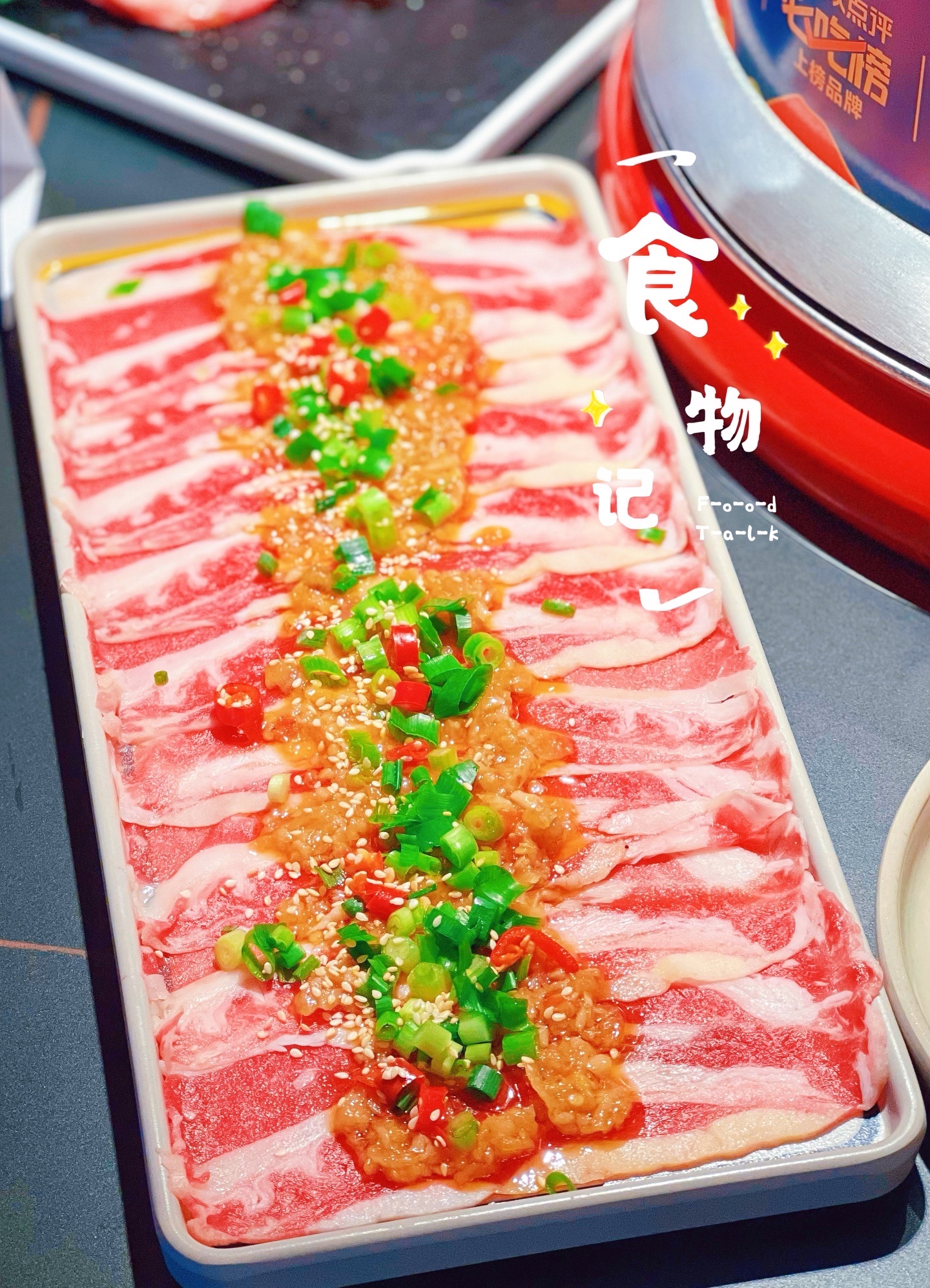 👉鲜切雪花牛肉,秘制厚切猪五花,泡椒肥牛,牛舌,雪花牛板腱、鲜肉现切怎么样都好吃。