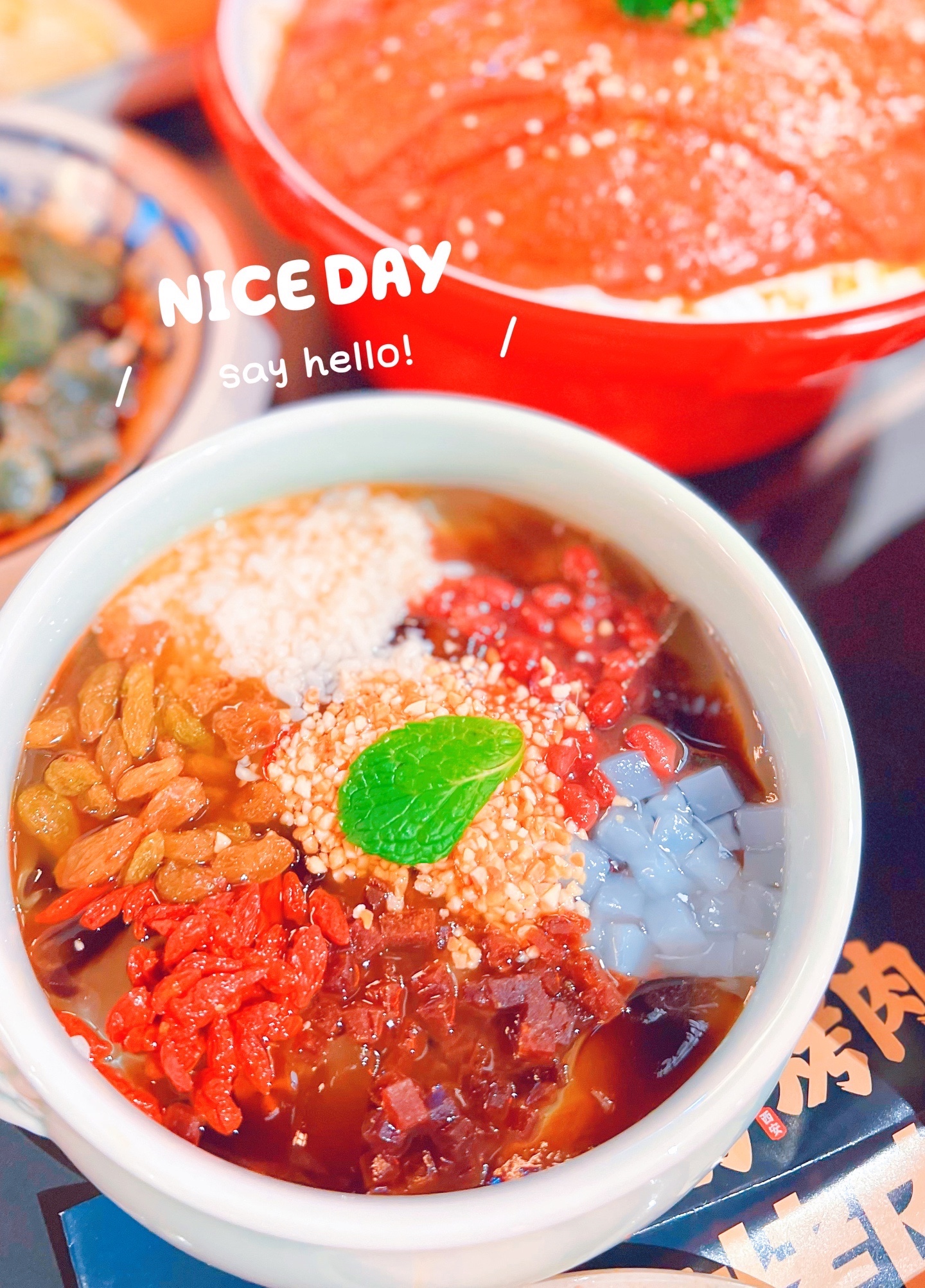 👉小吃甜品也都盲点亲测好吃, 陕北摇滚土豆表面酥脆,内里软糯,鲜咸香辣🥔什锦冰粉醪糟冰淇淋🍧桂香蜜豆花、冰爽杨梅冻样样可圈可点👅大楼吃肉不要停!走,一起去火炉旁!