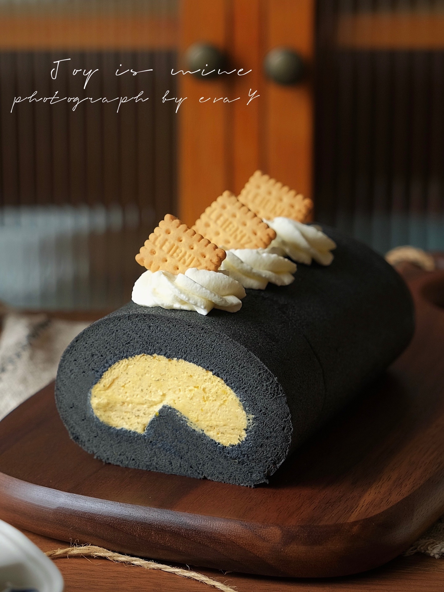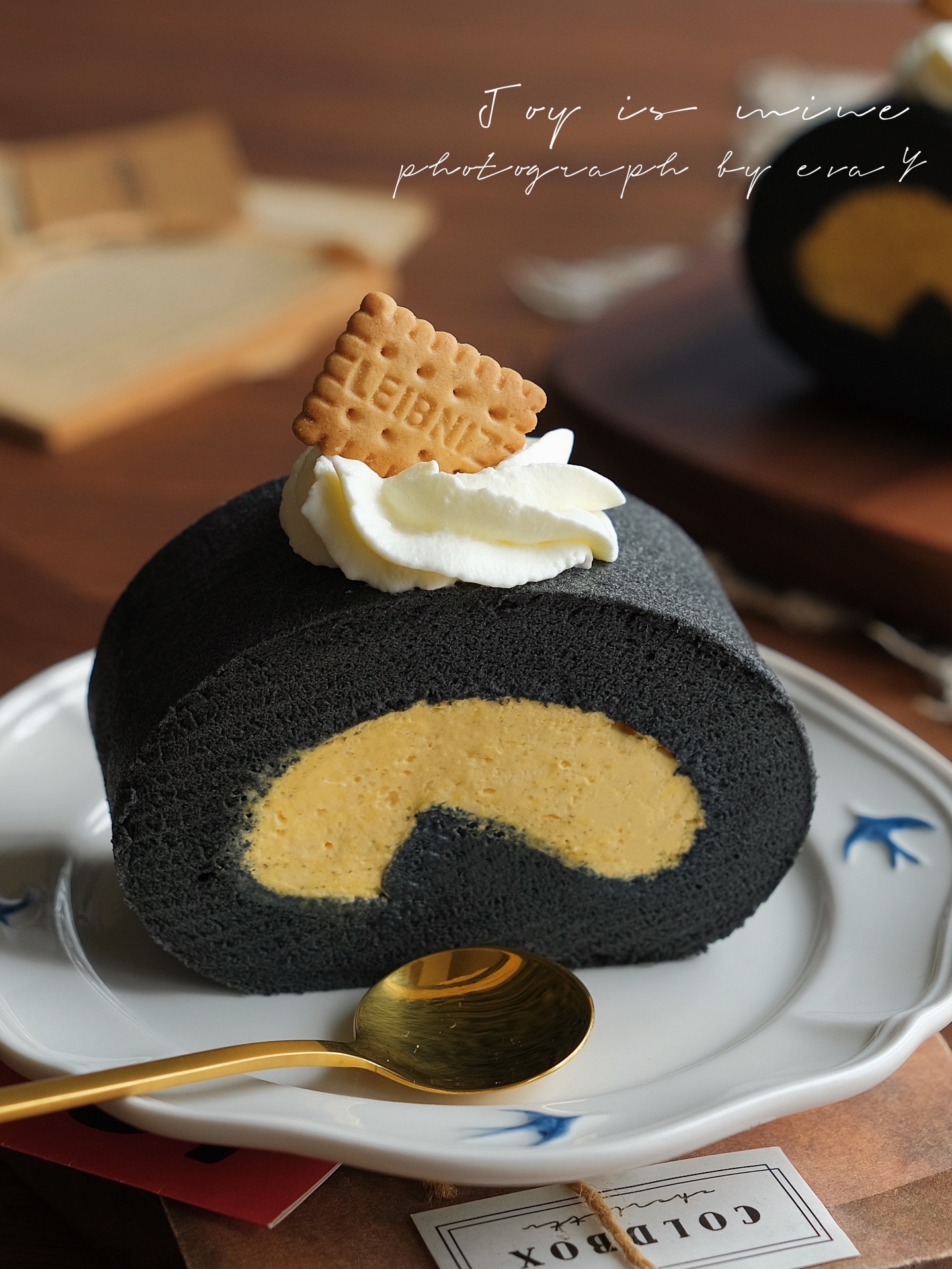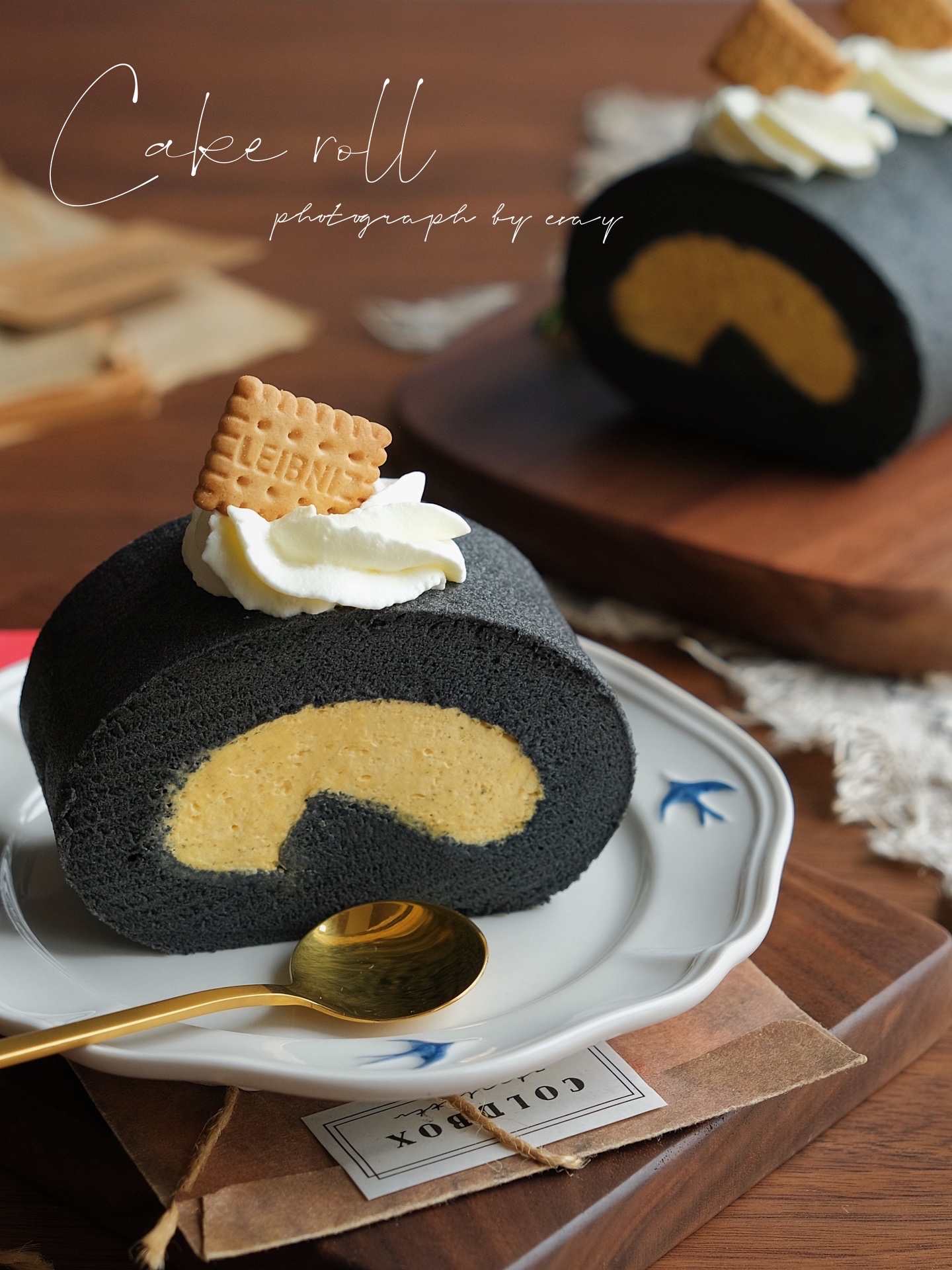 黑金配色的蛋糕卷