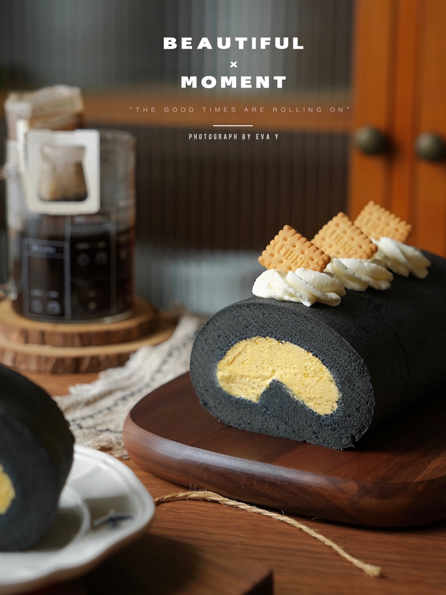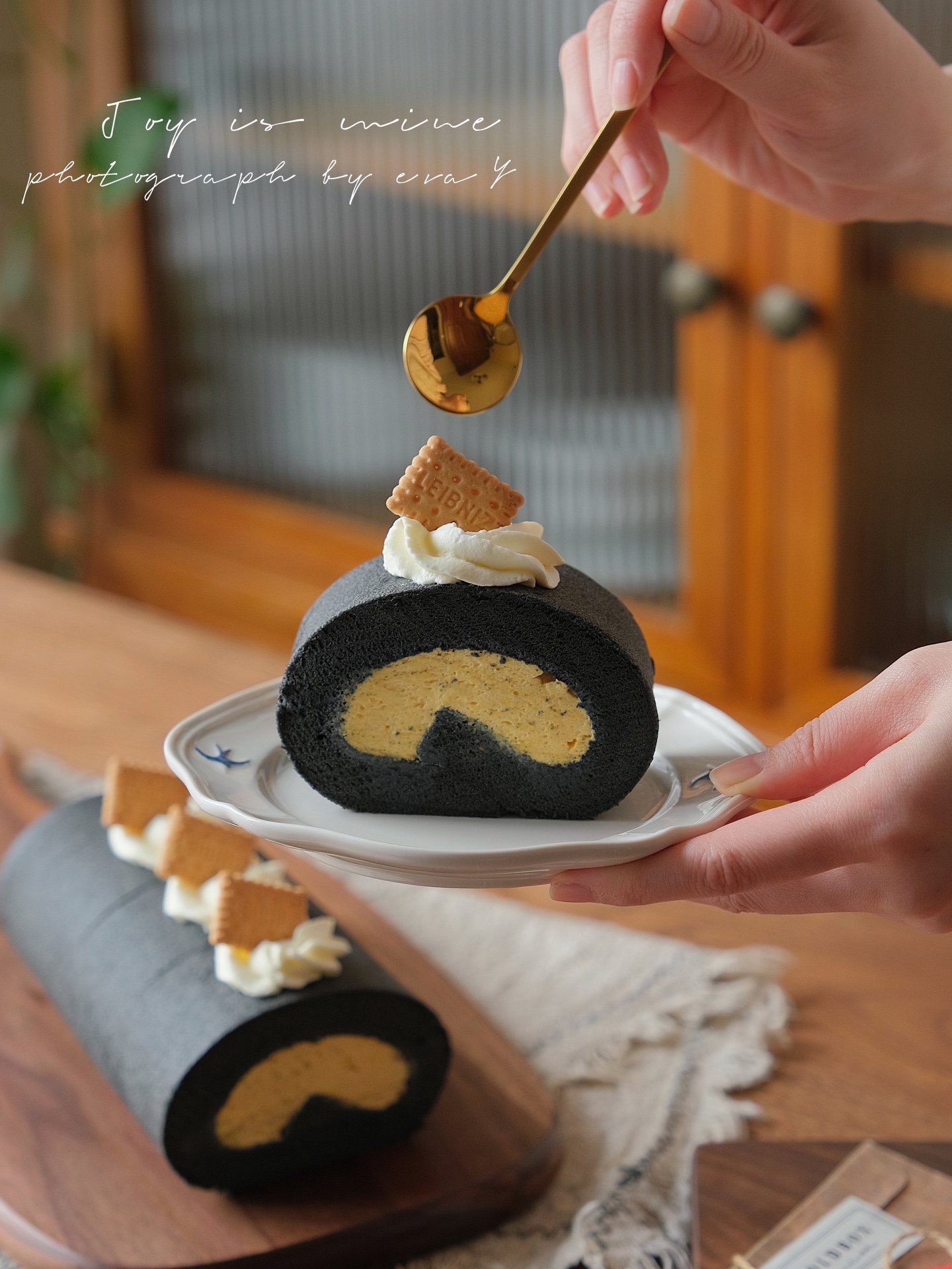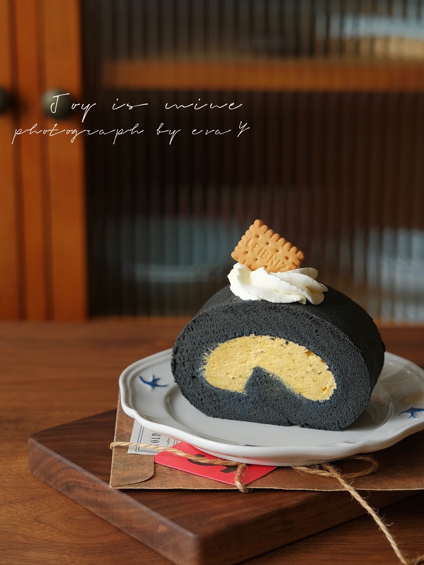 黑金配色的蛋糕卷