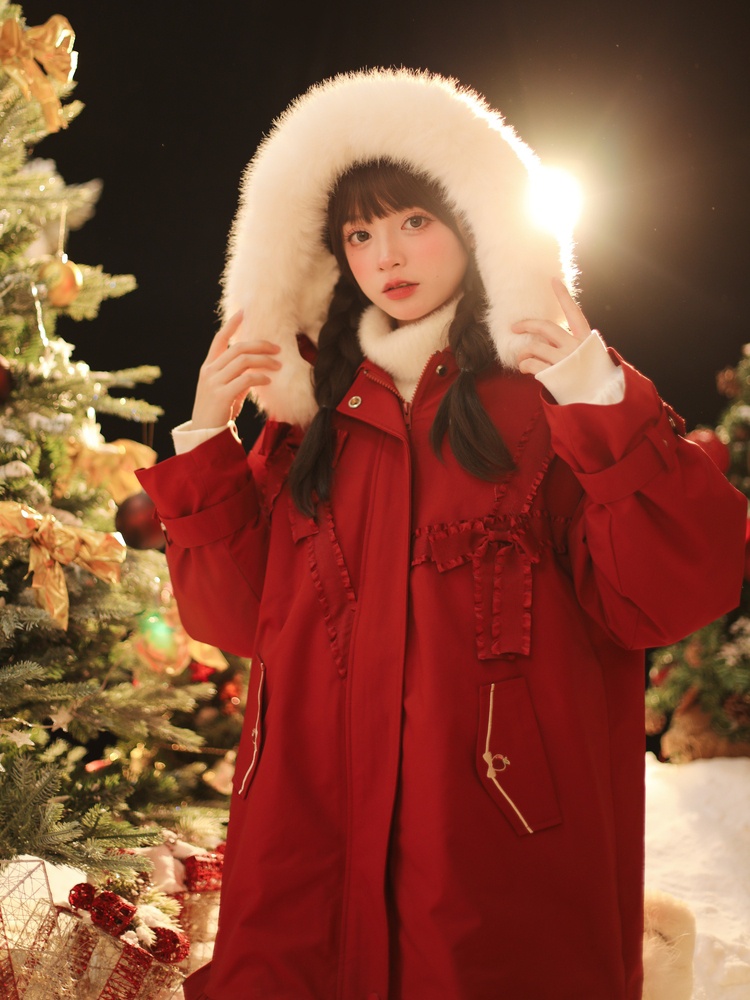 好像神明少女! ! !森女部落这个新款红色外套好适合圣诞和过年的时候穿,好有氛围感