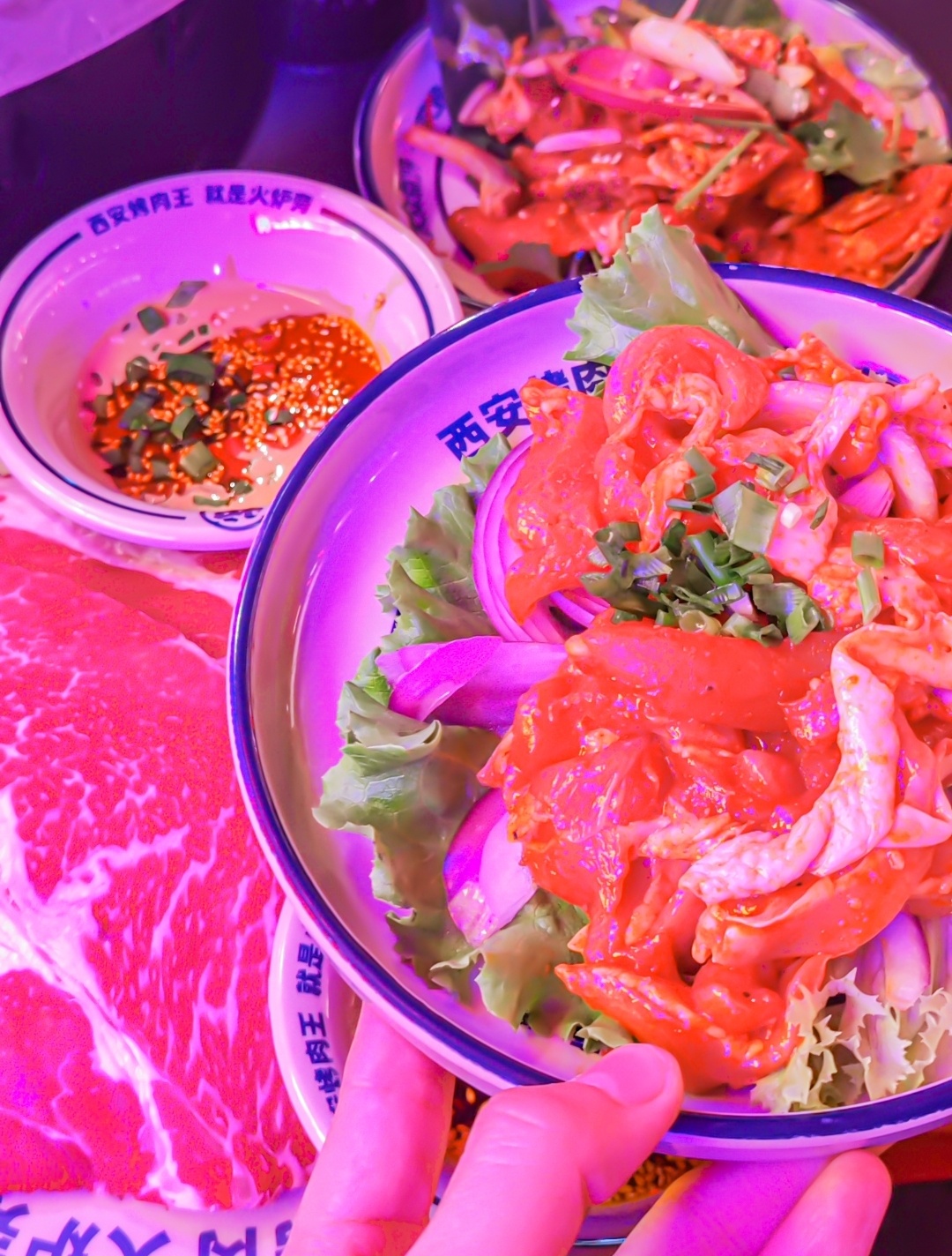 油泼辣子烤肉 浇上老陕灵魂的油泼辣子烤肉体验超级棒,肉质新鲜,肥瘦也合适,滋滋声的煎烤下香飘四座,不愧是们家的招牌,都说关中是油泼辣子一道菜!这道菜真的很有老陕特色,必吃!