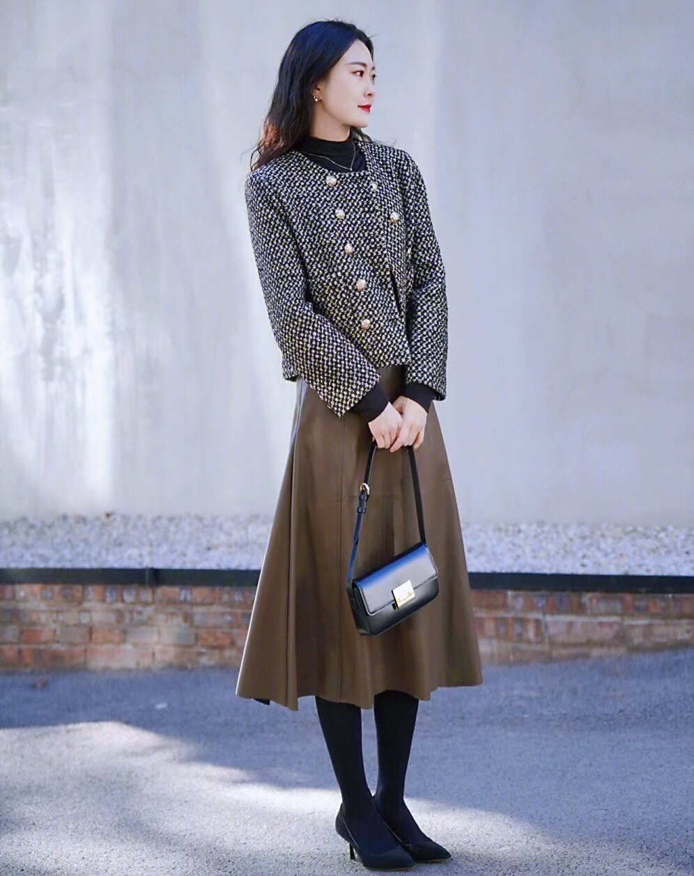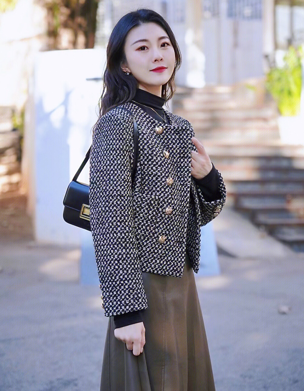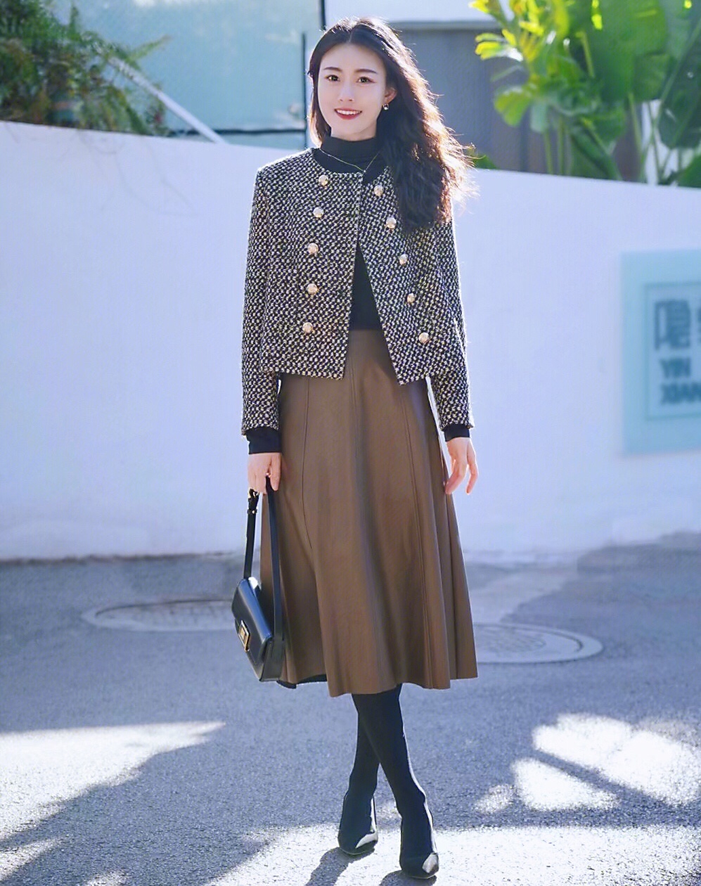 秋冬小个子女生穿搭,小香风外套搭配半身裙,简约时髦~