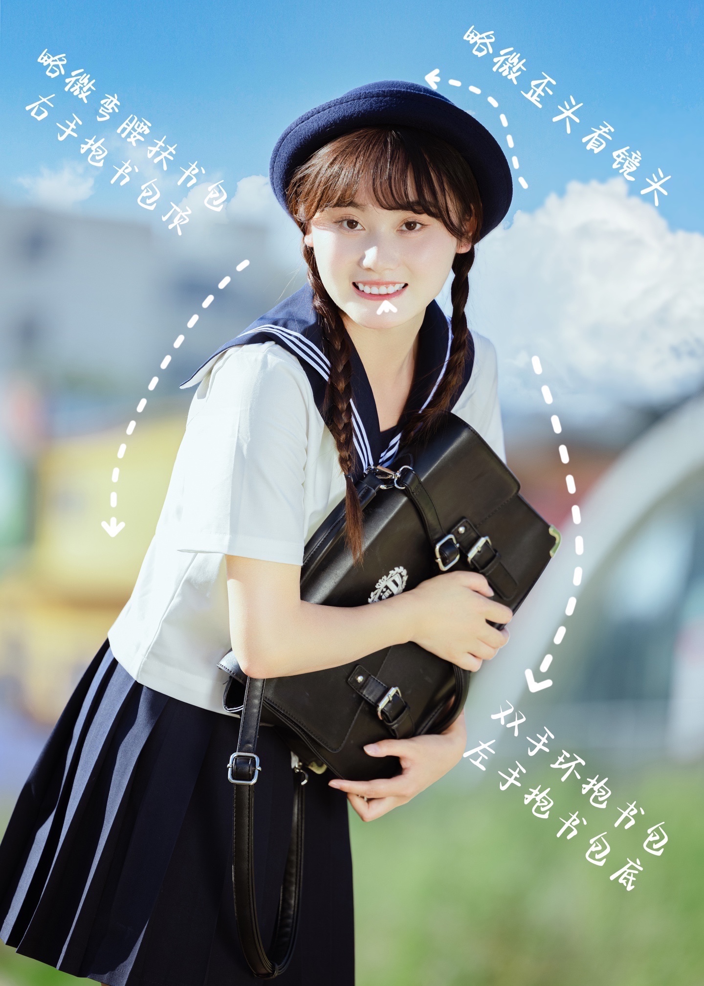 🌈:动作储备|活泼 俏皮 爱笑是精髓( 伸手扶帽子 揪辫子 提脚很活泼 抱着书包往前倾 坐在地下看镜头 转身回眸笑都可)真的分分钟出大片 ㊗️大家拍照再也不尴尬呀🥰