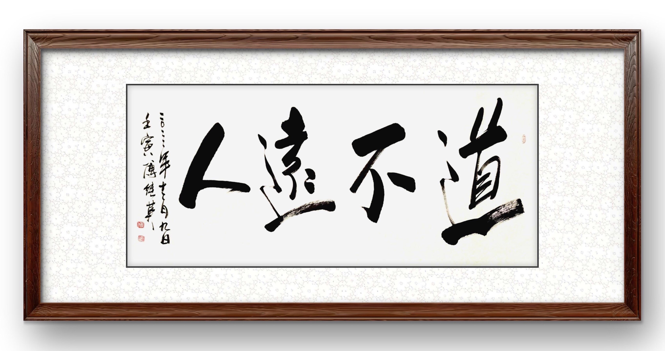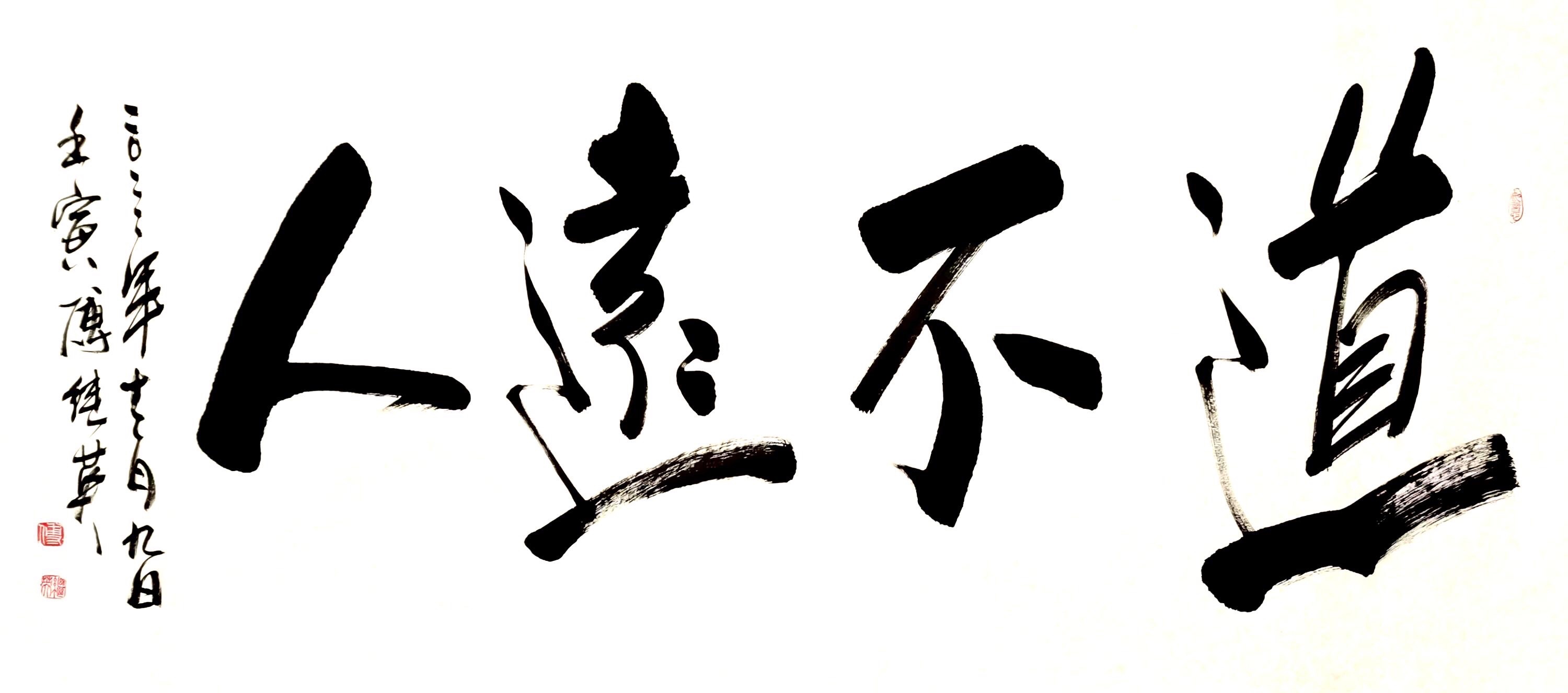 傅继英书法:道不远人。出自《中庸》第十三章,子曰:道不远人,人之为道而远人,不可以为道。“道”就是《中庸》中所指的中庸之道,是一种至大无外、至小无内的至高道德,是天地、人伦之道。道不远人意即此道人可以正心诚意修炼而成,旨在鼓励人努力向“道”靠近,不断努力提高自己的认知水平和伦理水平。