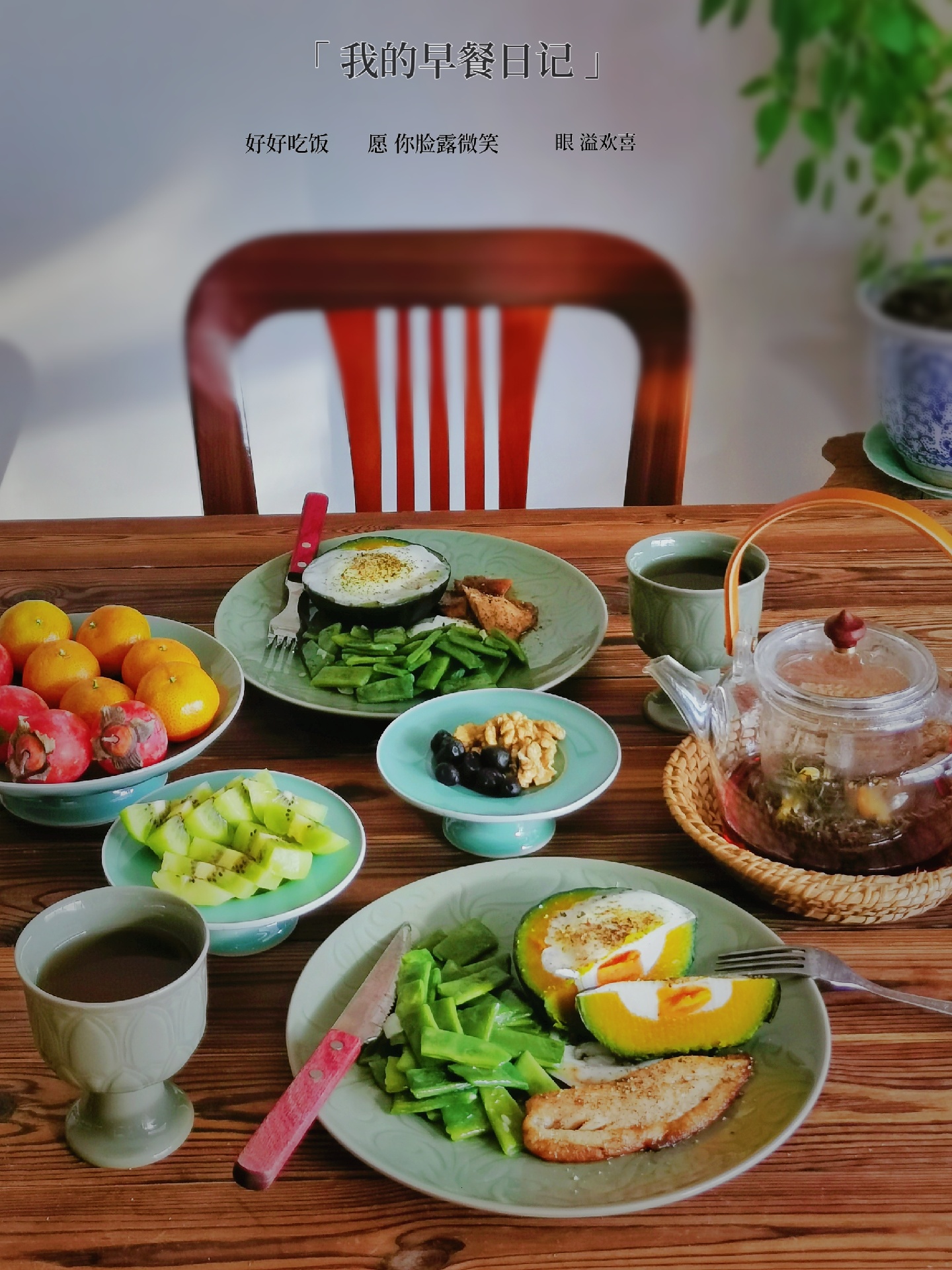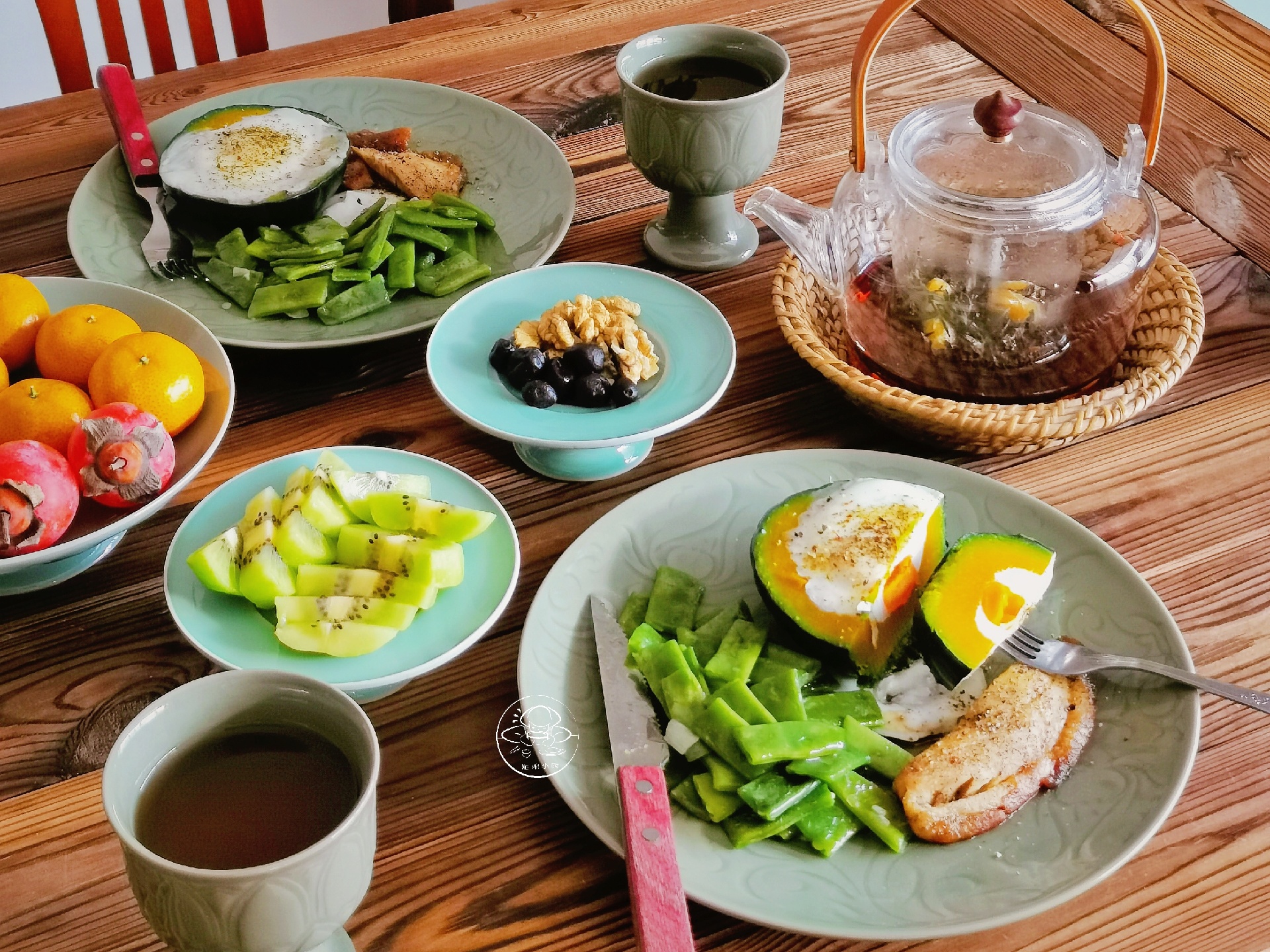 荤素搭配营养均衡。早餐食物包含蔬菜、水果、鱼、蛋重搭配轻烹饪,种类丰富营养全面。