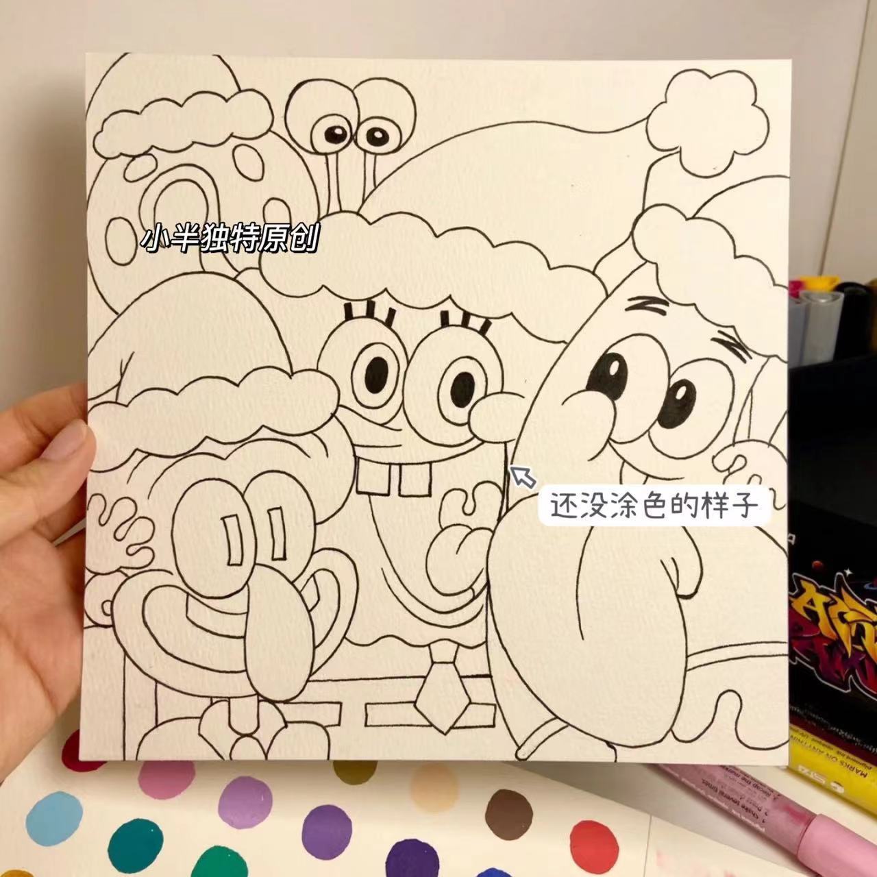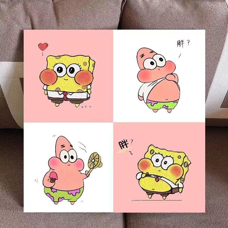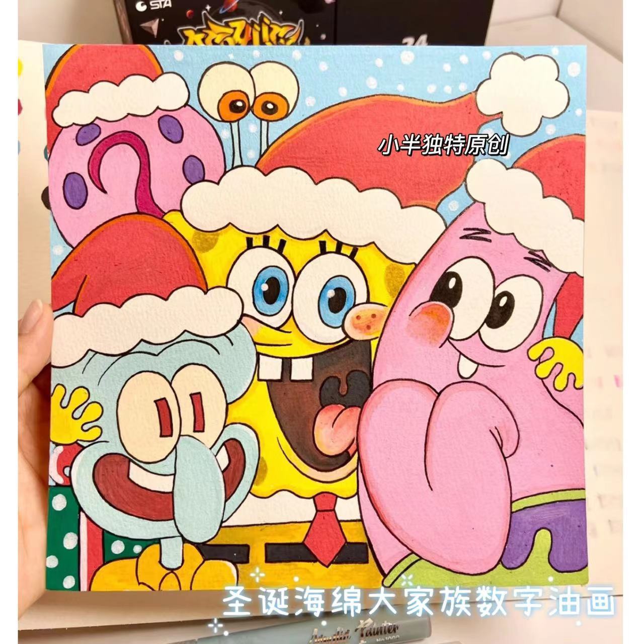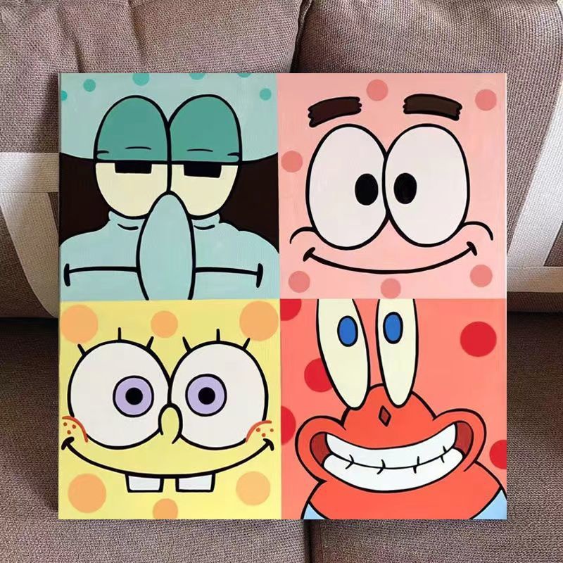 海绵宝宝圣诞节礼物四宫格diy数字油画填充手工绘画丙烯装饰油画❤️好好看的油画,自己画非常的有纪念意义,自己创作,或者送给朋友,值得推荐,我是推荐好物的蒙蒙,喜欢我就关注我吧❤️