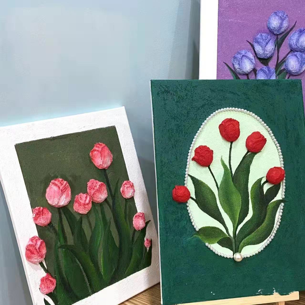 绝美郁金香丙烯立体肌理画diy数字油画石英砂手工郁金香装饰画❤️我是推荐好物的蒙蒙,喜欢我就关注我吧❤️