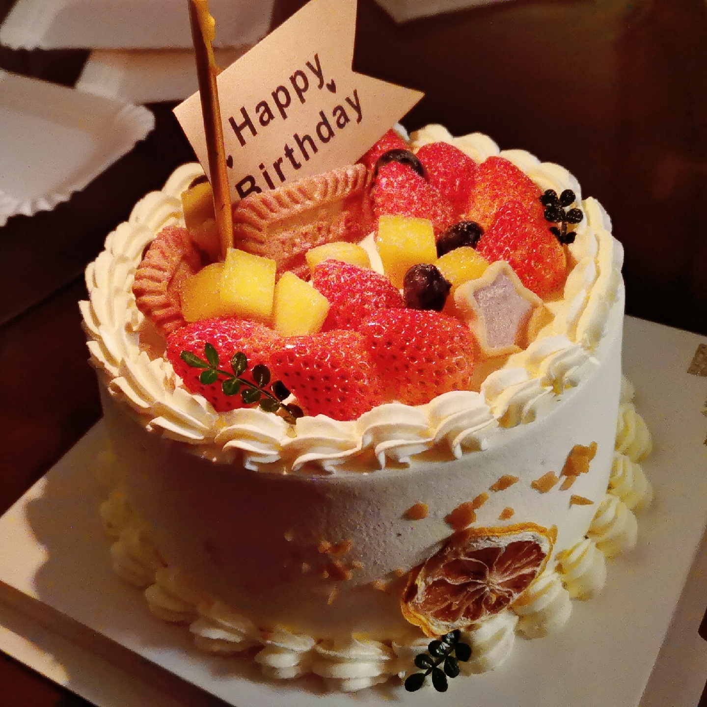 1⃣选择蛋糕时买水果蛋糕,有增加氛围感的饼干和小绿叶,最好能够撒上糖粉。蜡烛的选择需要金属质感,不要花花绿绿