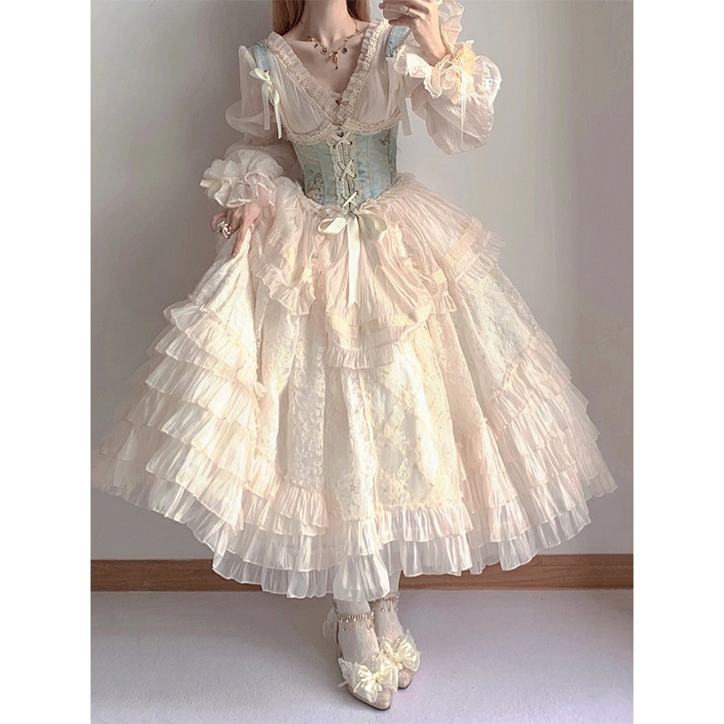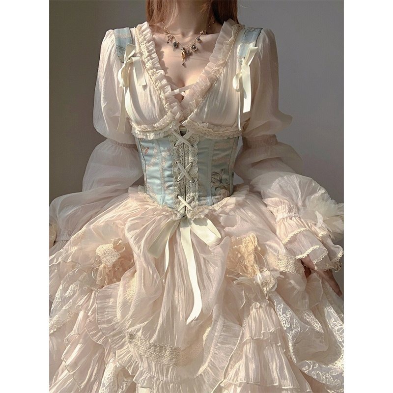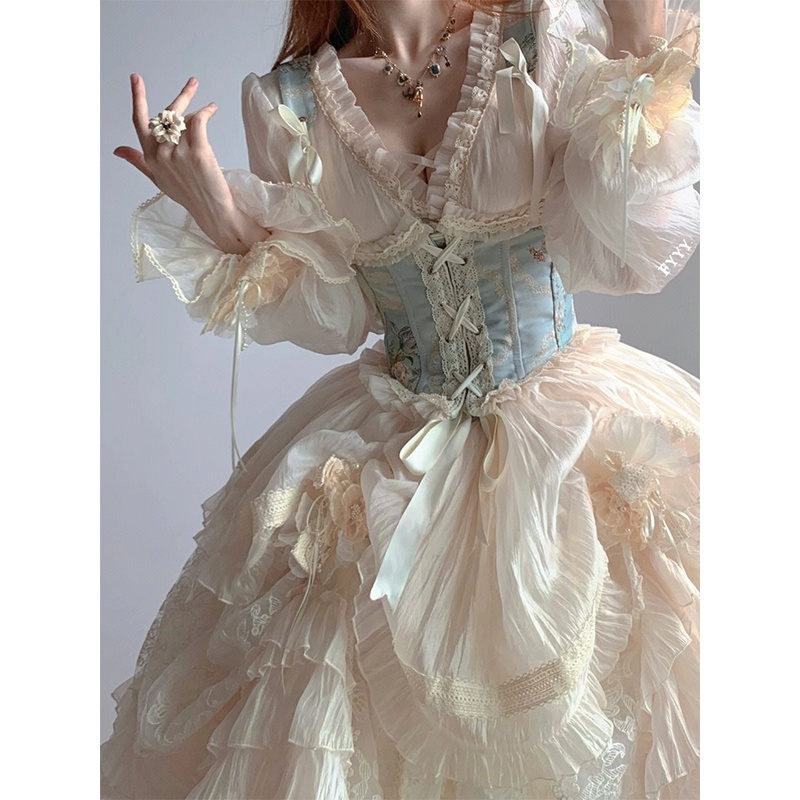 生成色腰封lolita花嫁套装重工洋装洛丽塔优雅气质大小姐