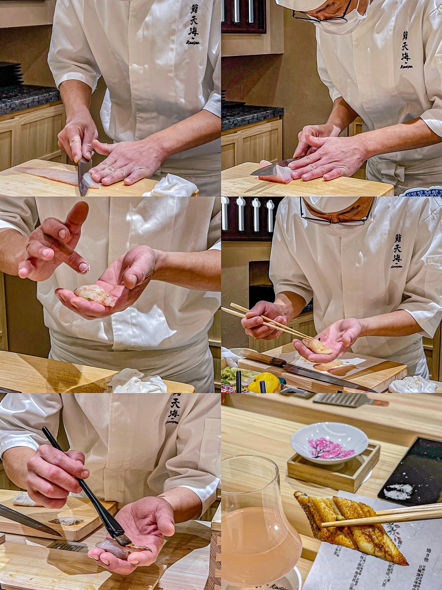 牡丹虾、縞参鱼、春子鲷、间八鱼、小竹荚鱼、醋渍青花鱼、星鳗,每一道手握都会搭配不同的饭和配料,红醋饭和白醋饭的口感也完全不同,有特殊偏好也可以和师傅讲