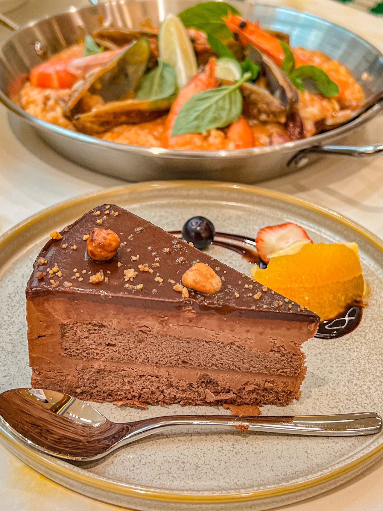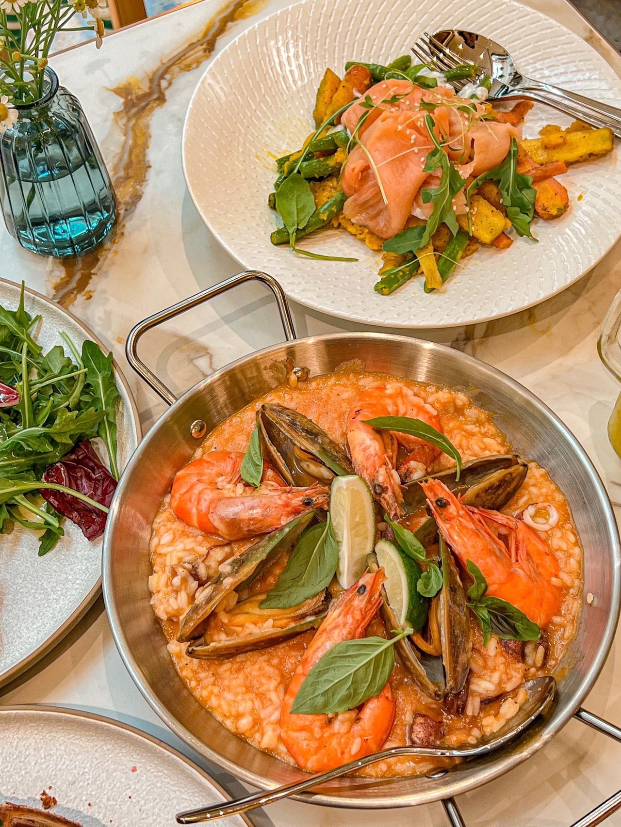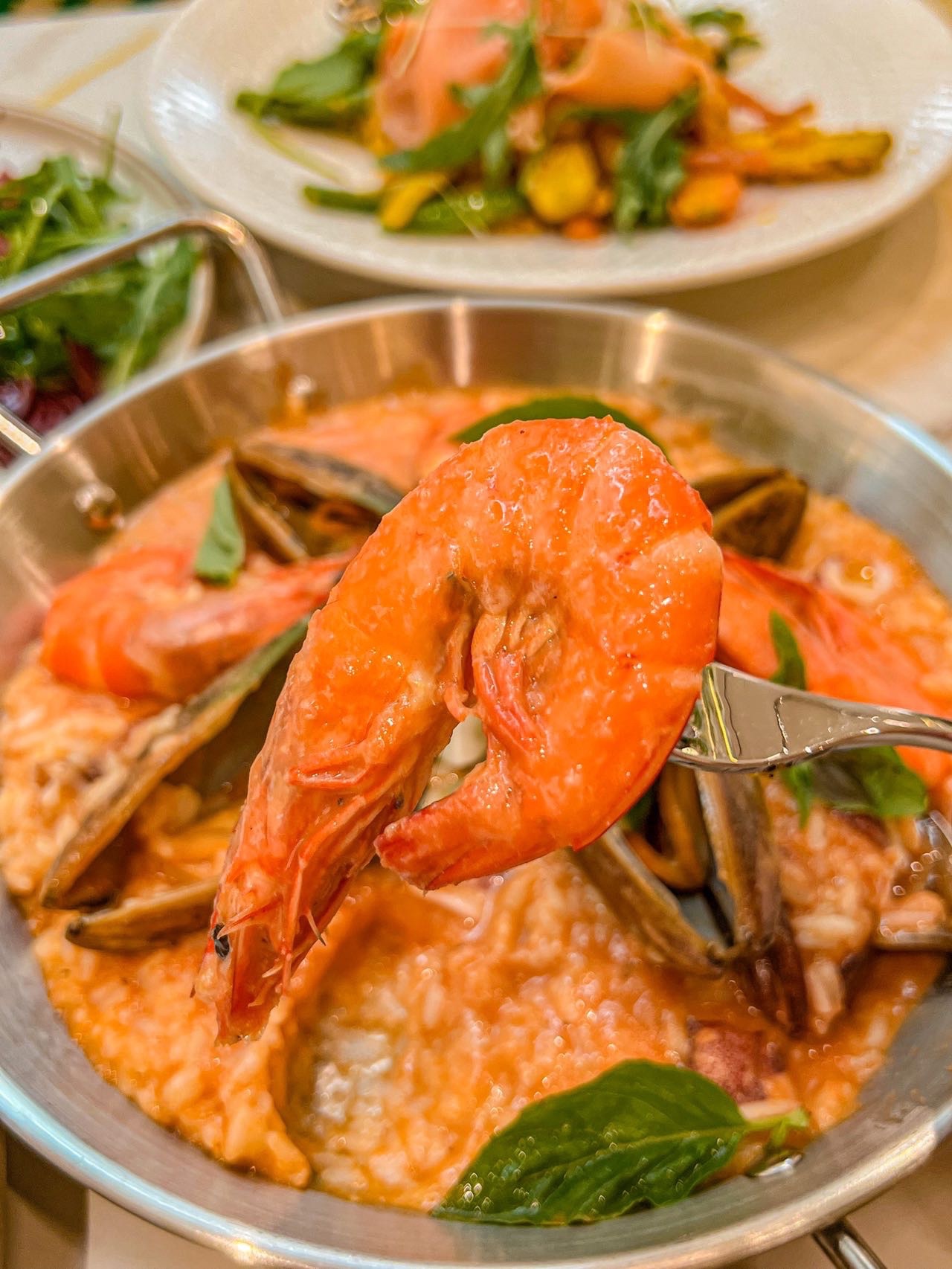✔️西班牙风情海鲜饭:真的太诱人了,刚端上桌就令人馋涎欲滴!里面有鱿鱼、蛤蜊、青口贝,还有硕大的阿根廷虎虾,米饭煮到烂而不坨,不出国门也能感受到西班牙的风情,热情似火!