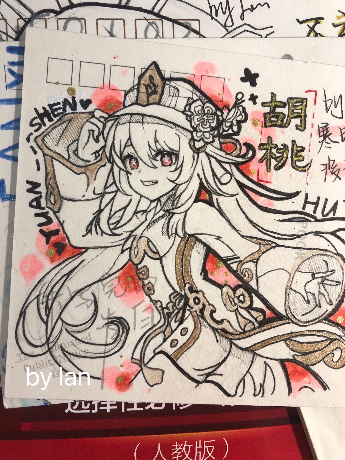 原神甘雨胡桃散兵手绘