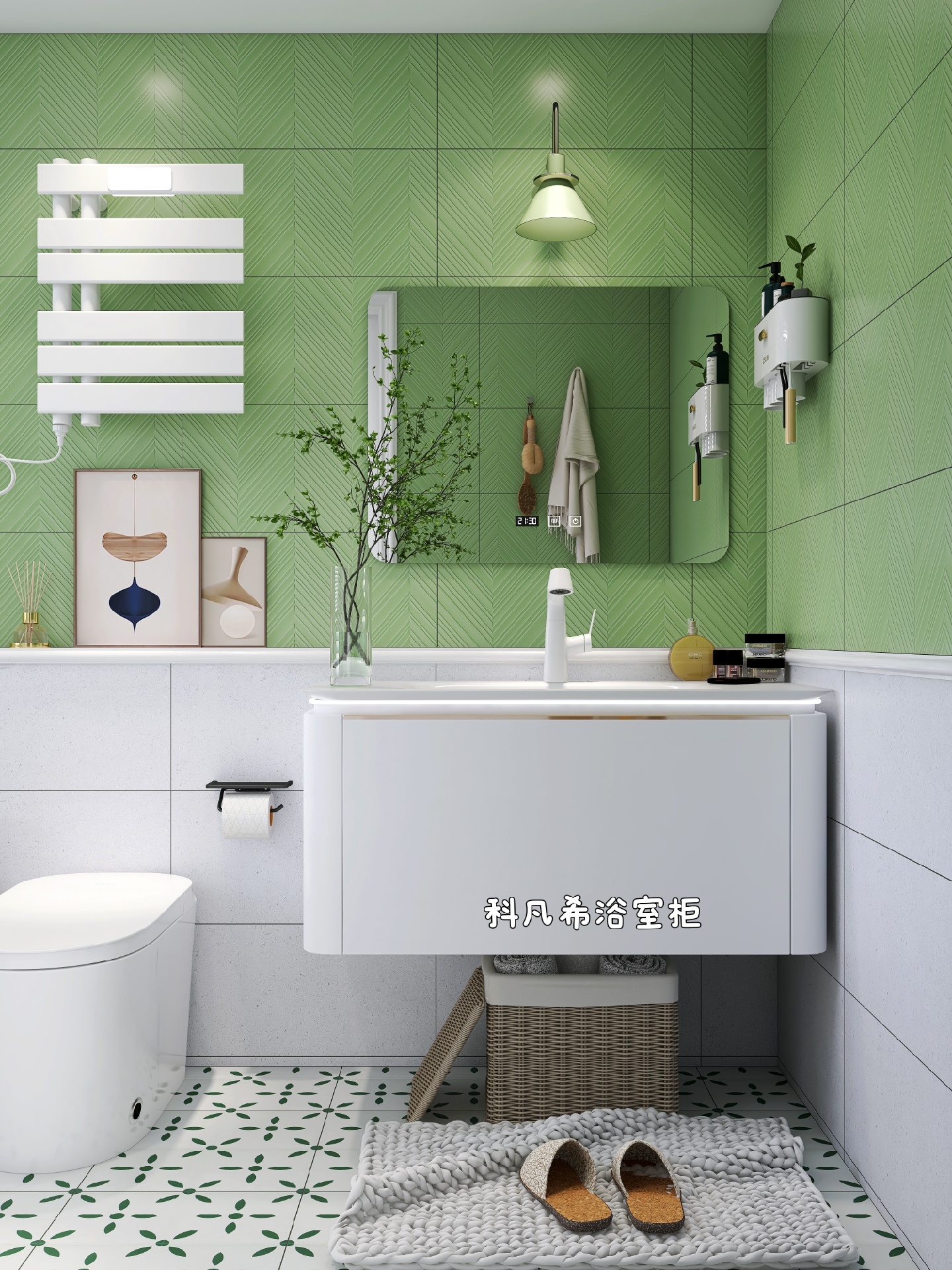 🍃 好喜欢这样的清新自然风浴室😍在绿色色系的点缀下,浴室呈现出舒适和活力生命之感🏃