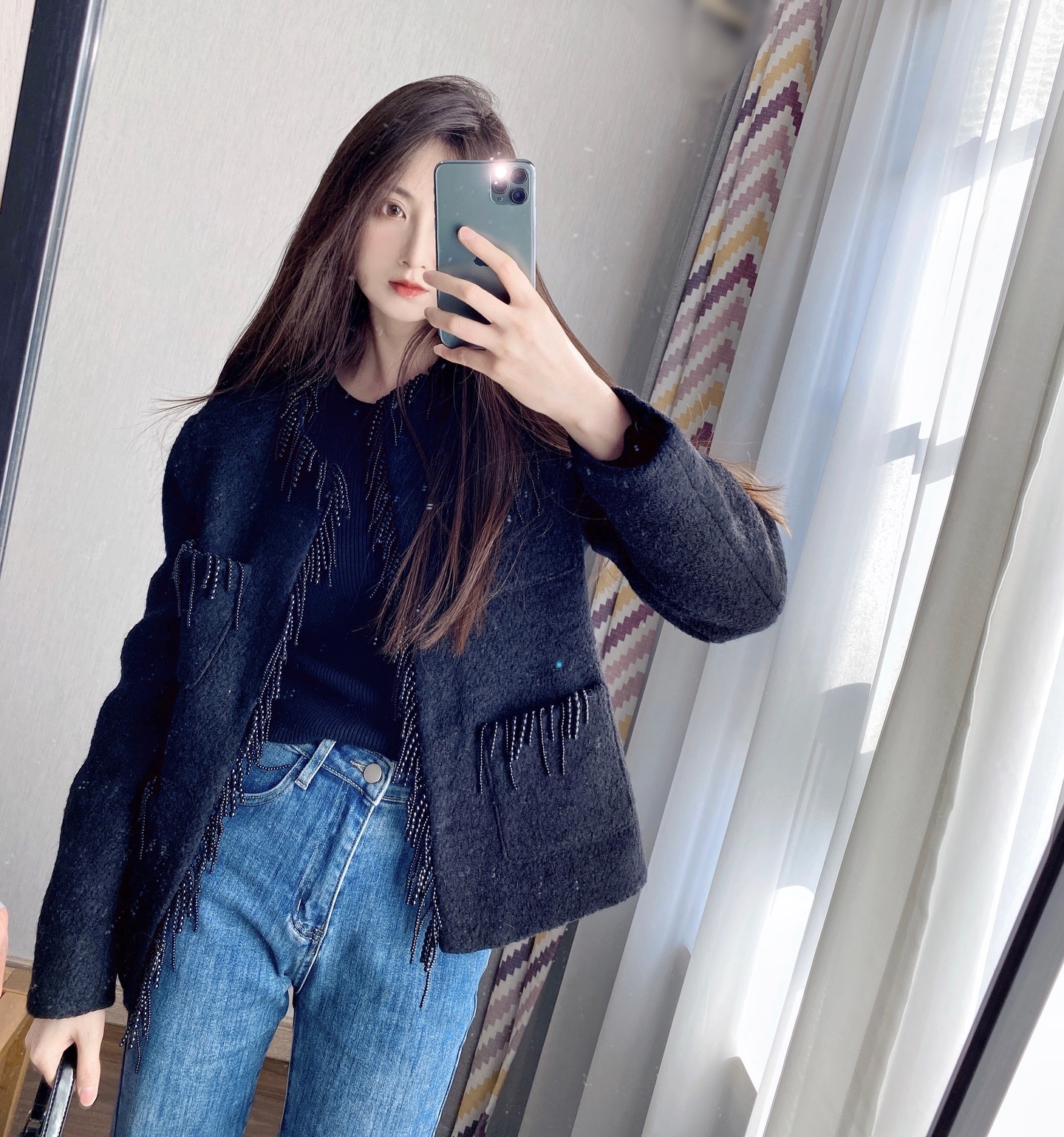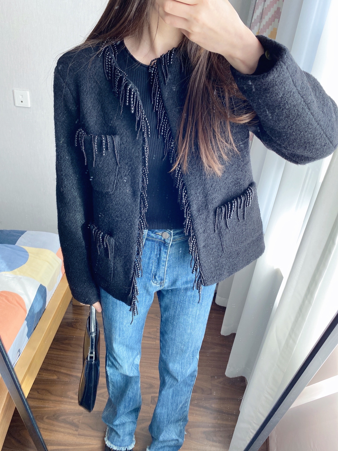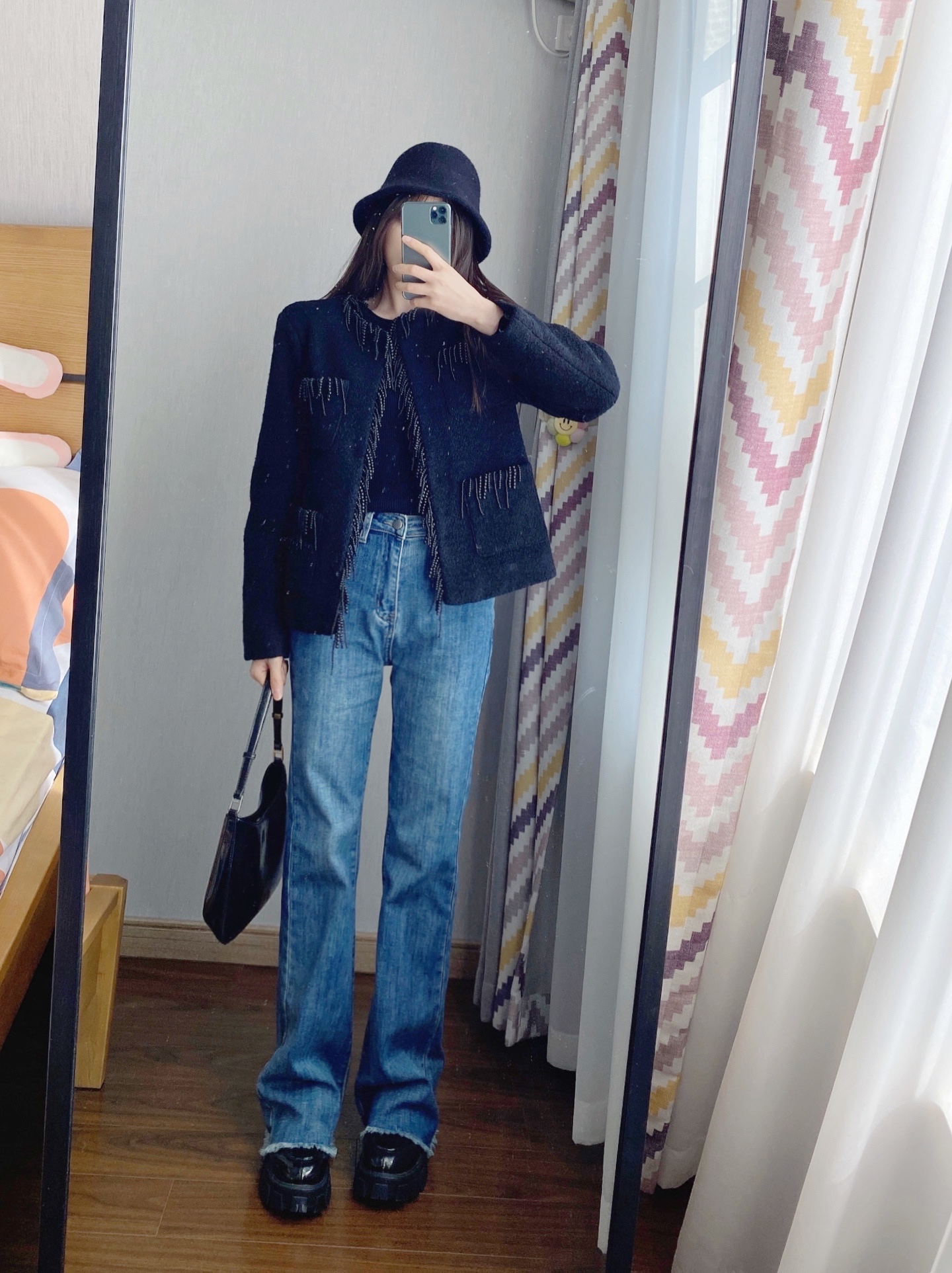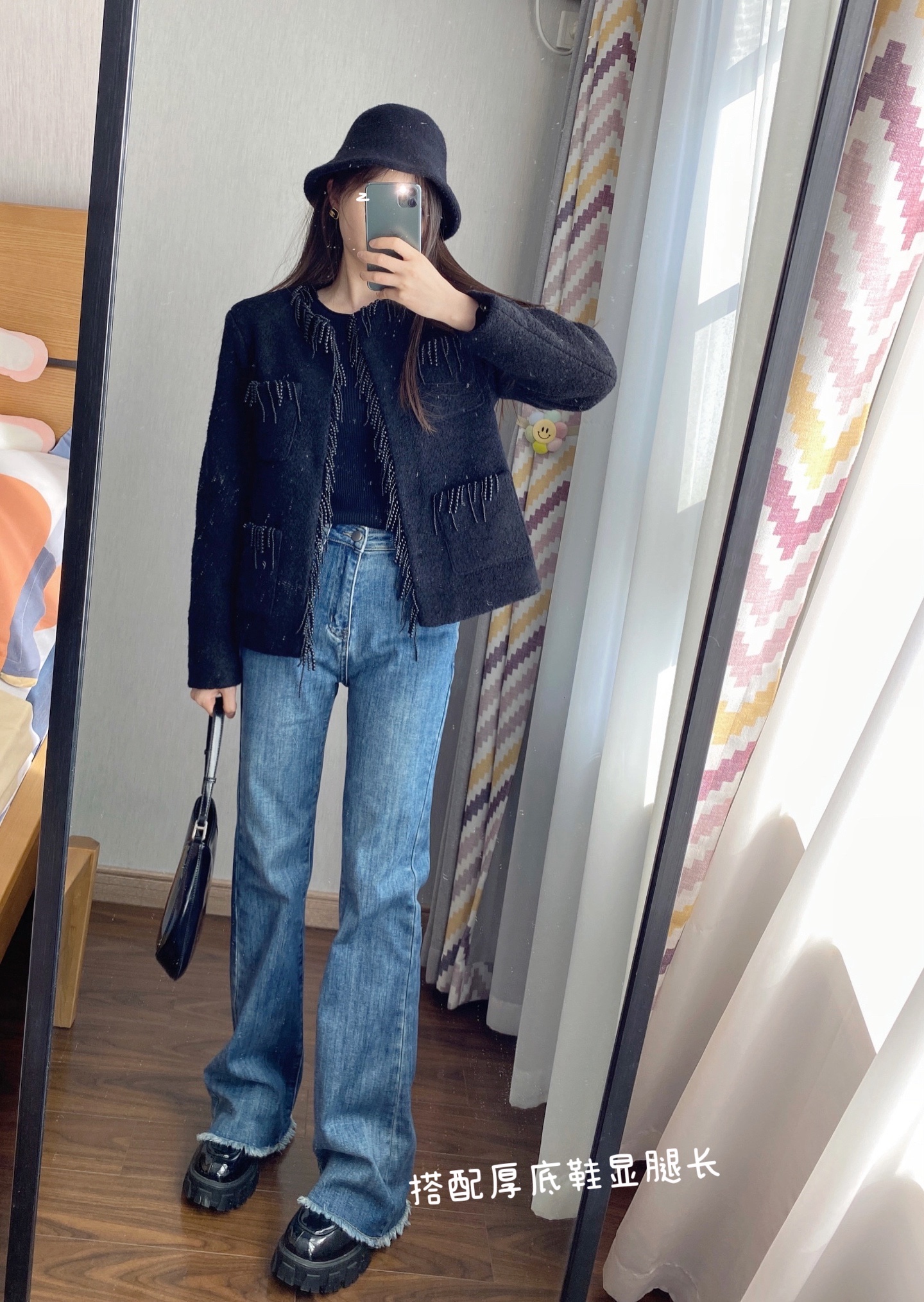 今天是黑色珠串小香风羽绒服搭配微喇牛仔裤,配一双厚底鞋,牛仔裤里还可以穿秋裤,保暖拿捏住了!@MT情报局 @MT小美酱